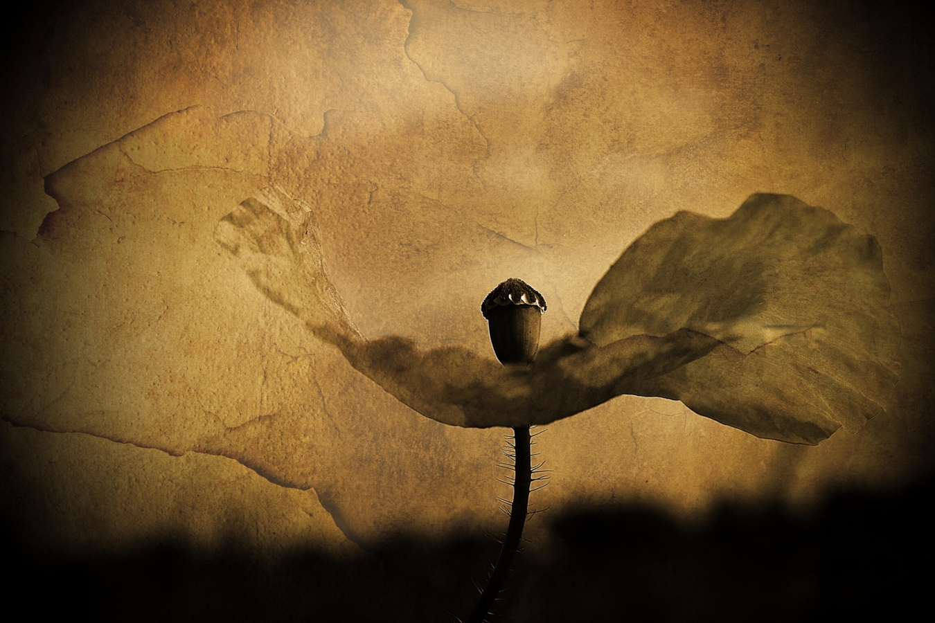zainspirował mnie bezlistny mak, sfotografowałem go wczesnym majem przy drodze gdzie go potrącał wiatr który tworzyły przyjeżdżające samochody. Fotografie z Raw wywołałem w nocy i mnie urzekła niby nic ale zastanawiająca co to takiego wystylizowałem ją na kreatywną sepie i z podkładem papieru czerpanego Fotografia wydruk na papierze czerpanym. wydruk nr 1