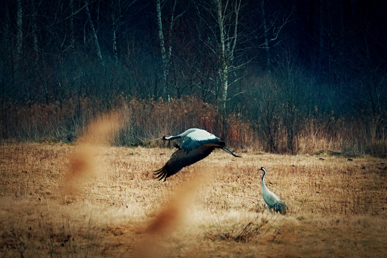 Wczesna wiosna 2025 przylot żurawi na pola blisko Jarosławia na Podkarpaciu