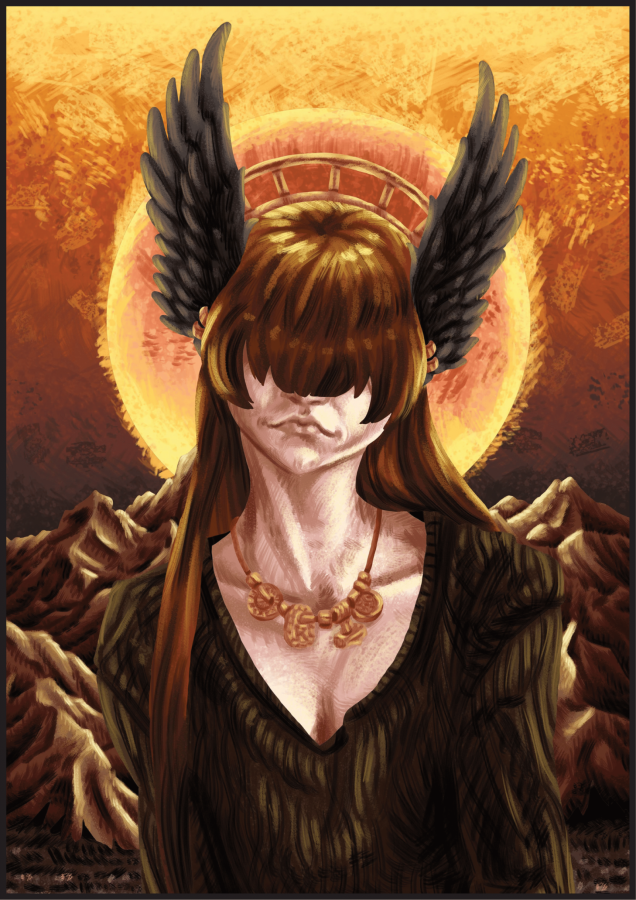 Obraz wykonany techniką digitalową za pomocą tabletu graficznego. Jest częścią tryptyku "Kół i skrzydeł". Inspiracją były motywy biblijne oraz przyrodnicze. Praca zostanie wysłana do Państwa w formie wydruku na papierze o dużej gramaturze.