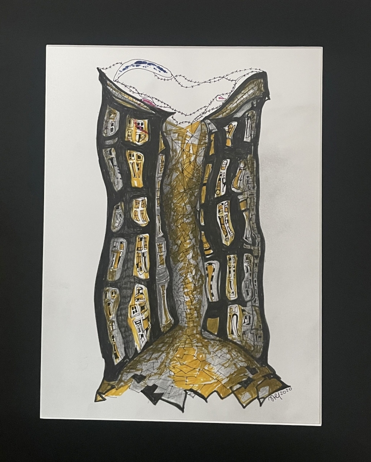 „Oddech miasta” to ekspresyjna grafika ukazująca dynamiczną strukturę przypominającą miejskie budynki, które zdają się żyć, poruszać i oddychać. Zniekształcone linie i złocisto-szare barwy nadają kompozycji wrażenie ruchu, a jednocześnie symbolizują kruchość i elastyczność współczesnych przestrzeni miejskich. Autor zestawia organiczne formy z geometrycznymi detalami, tworząc wizję miasta, które nie jest martwym tworem z betonu i szkła, lecz pulsującym organizmem — pełnym emocji, energii i ludzkich historii. Grafika wykonana została techniką mieszaną (tusz, akwarela, marker) na papierze wysokiej jakości. Obraz idealnie będzie się prezentował w gabinecie lub pracowni. Abstrakcyjny i nieco surrealistyczny charakter obrazu sprzyja refleksji i kreatywności. Ponadto, złote akcenty dodają elegancji, a nieregularne formy mogą inspirować do nieszablonowego myślenia.