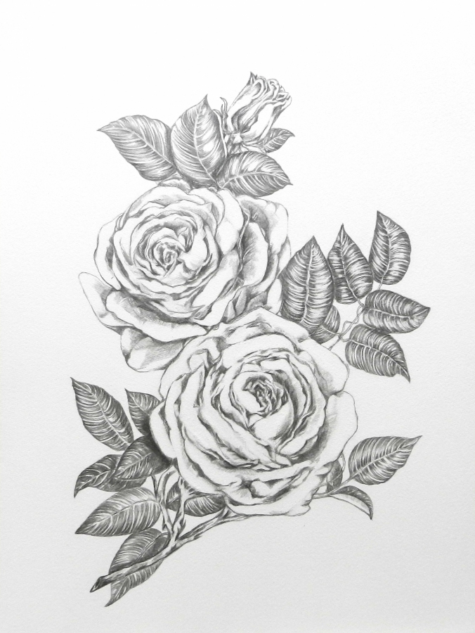 Rysunek artystyczny tworzony grafitem średniej twardości ,na profesjonalnym papierze artystycznym o delikatnej fakturze . Format rysunku 36x48 cm . Datowanie , tytuł i Sygnatury Autorskie zamieszczone z tyłu pracy. Róże wielokrotnie są głównym tematem prac Artystki zafascynowanej ich doskonałością i delikatnością . Użyte medium podczas tworzenia doskonale oddaje delikatność i aksamitność kwiatów róży . Praca opatrzona Autorskim Certyfikatem Autentyczności . Rysunek zabezpieczony werniksem .