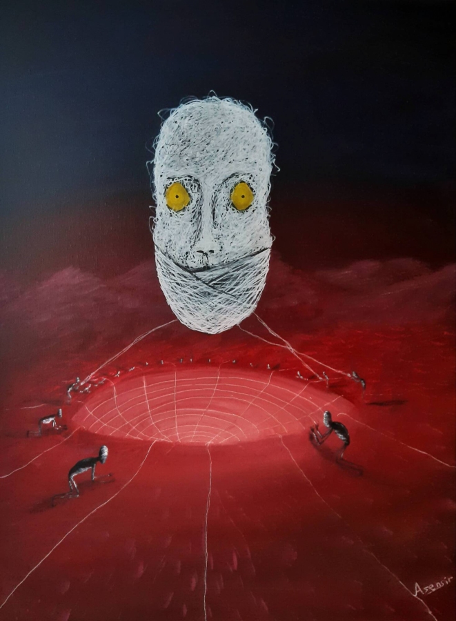 Obraz akrylowy na płótnie bawełnianym, malarstwo surrealistyczne. Praca sygnowana: z przodu - podpis artysty „Asensir”, z tyłu – tytuł / podpis, imię i nazwisko artysty / rok powstania. Praca nie zawiera ramy, boczne krawędzie płótna zamalowane estetycznie na czarno - obraz gotowy do powieszenia. Wymiary: 80x60x2cm. Cykl „AP” (pierwotnie „Alternative painting”) to pierwszy rozdział w twórczości artysty - moment, w którym intuicja, emocje i czysta satysfakcja z tworzenia wzięły górę nad szukaniem gotowych form czy zasad. To w pracach z tego cyklu kształtowała się jego stylistyka, a zarazem fundament, na którym opierają się wszystkie kolejne światy tworzone na płótnie. “AP” to miejsce szukania własnego języka, wypierania się sztywnych reguł i podążania za tym, co podpowiadają emocje. Malarstwo, w którym proces tworzenia jest tak samo ważny jak efekt - szczerą, intuicyjną wyprawą w głąb wyobraźni. To zarazem zapis drogi, jaką artysta pokonał - od pierwszych, intuicyjnych prób w surrealizmie, po świadomość tego, jak mocny potrafi być język sztuki w wyrażaniu doświadczeń.