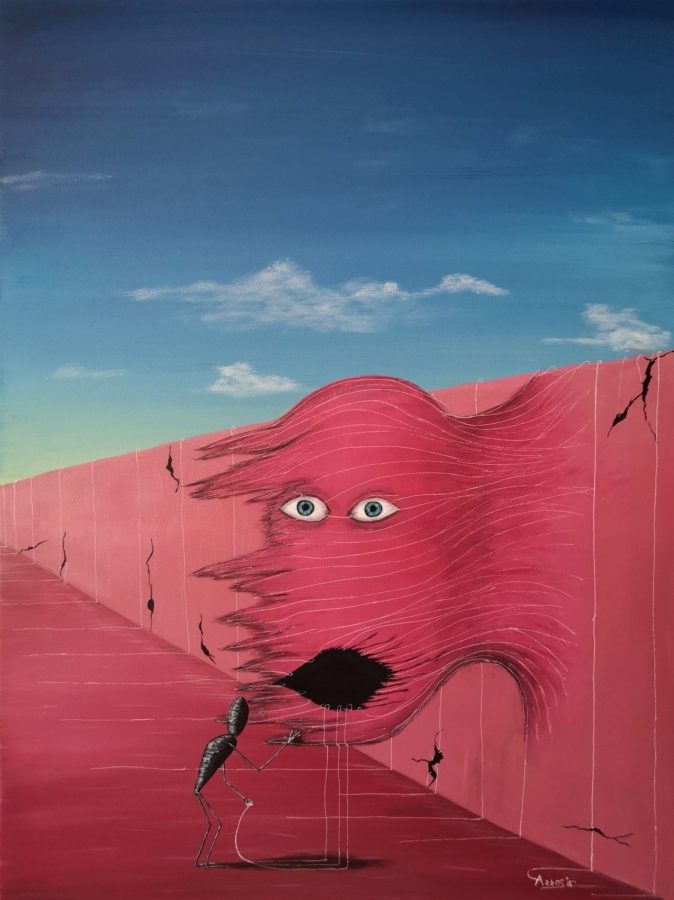 Obraz akrylowy na płótnie bawełnianym, malarstwo surrealistyczne. Praca sygnowana: z przodu - podpis artysty „Asensir”, z tyłu – tytuł / podpis, imię i nazwisko artysty / rok powstania. Praca nie zawiera ramy, boczne krawędzie płótna zamalowane estetycznie na czarno - obraz gotowy do powieszenia. Wymiary: 80x60x2cm. Cykl „AP” (pierwotnie „Alternative painting”) to pierwszy rozdział w twórczości artysty - moment, w którym intuicja, emocje i czysta satysfakcja z tworzenia wzięły górę nad szukaniem gotowych form czy zasad. To w pracach z tego cyklu kształtowała się jego stylistyka, a zarazem fundament, na którym opierają się wszystkie kolejne światy tworzone na płótnie. “AP” to miejsce szukania własnego języka, wypierania się sztywnych reguł i podążania za tym, co podpowiadają emocje. Malarstwo, w którym proces tworzenia jest tak samo ważny jak efekt - szczerą, intuicyjną wyprawą w głąb wyobraźni. To zarazem zapis drogi, jaką artysta pokonał - od pierwszych, intuicyjnych prób w surrealizmie, po świadomość tego, jak mocny potrafi być język sztuki w wyrażaniu doświadczeń.
