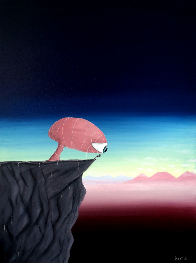 Obraz akrylowy na płótnie bawełnianym, malarstwo surrealistyczne. Praca sygnowana: z przodu - podpis artysty „Asensir”, z tyłu – tytuł / podpis, imię i nazwisko artysty / rok powstania. Praca nie zawiera ramy, boczne krawędzie płótna zamalowane estetycznie na czarno - obraz gotowy do powieszenia. Wymiary: 80x60x2cm. Cykl „AP” (pierwotnie „Alternative painting”) to pierwszy rozdział w twórczości artysty - moment, w którym intuicja, emocje i czysta satysfakcja z tworzenia wzięły górę nad szukaniem gotowych form czy zasad. To w pracach z tego cyklu kształtowała się jego stylistyka, a zarazem fundament, na którym opierają się wszystkie kolejne światy tworzone na płótnie. “AP” to miejsce szukania własnego języka, wypierania się sztywnych reguł i podążania za tym, co podpowiadają emocje. Malarstwo, w którym proces tworzenia jest tak samo ważny jak efekt - szczerą, intuicyjną wyprawą w głąb wyobraźni. To zarazem zapis drogi, jaką artysta pokonał - od pierwszych, intuicyjnych prób w surrealizmie, po świadomość tego, jak mocny potrafi być język sztuki w wyrażaniu doświadczeń.