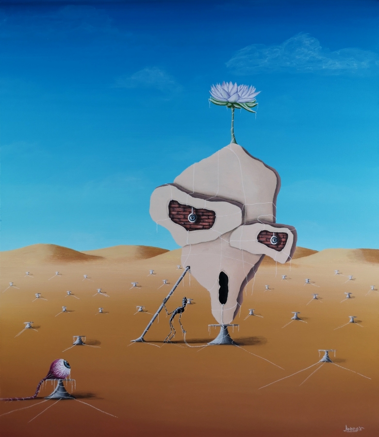 Obraz akrylowy na płótnie bawełnianym, malarstwo surrealistyczne. Praca sygnowana: z przodu - podpis artysty „Asensir”, z tyłu – tytuł / podpis, imię i nazwisko artysty / rok powstania. Praca nie zawiera ramy, boczne krawędzie płótna zamalowane estetycznie na czarno - obraz gotowy do powieszenia. Wymiary: 70x60x2cm. Cykl „AP” (pierwotnie „Alternative painting”) to pierwszy rozdział w twórczości artysty - moment, w którym intuicja, emocje i czysta satysfakcja z tworzenia wzięły górę nad szukaniem gotowych form czy zasad. To w pracach z tego cyklu kształtowała się jego stylistyka, a zarazem fundament, na którym opierają się wszystkie kolejne światy tworzone na płótnie. “AP” to miejsce szukania własnego języka, wypierania się sztywnych reguł i podążania za tym, co podpowiadają emocje. Malarstwo, w którym proces tworzenia jest tak samo ważny jak efekt - szczerą, intuicyjną wyprawą w głąb wyobraźni. To zarazem zapis drogi, jaką artysta pokonał - od pierwszych, intuicyjnych prób w surrealizmie, po świadomość tego, jak mocny potrafi być język sztuki w wyrażaniu doświadczeń.