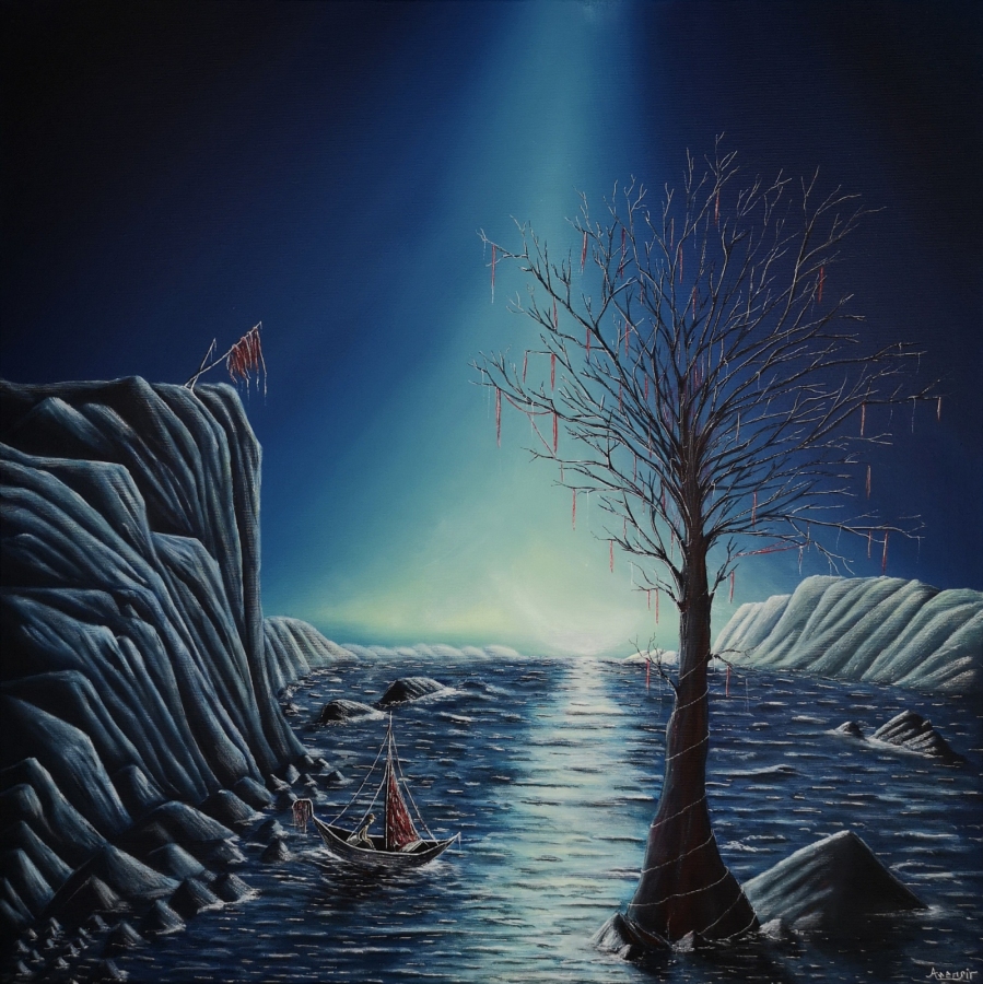 fantastykasurrealizmpejzażakrylobrazmorzeDrzewoGranatowyNiebieski