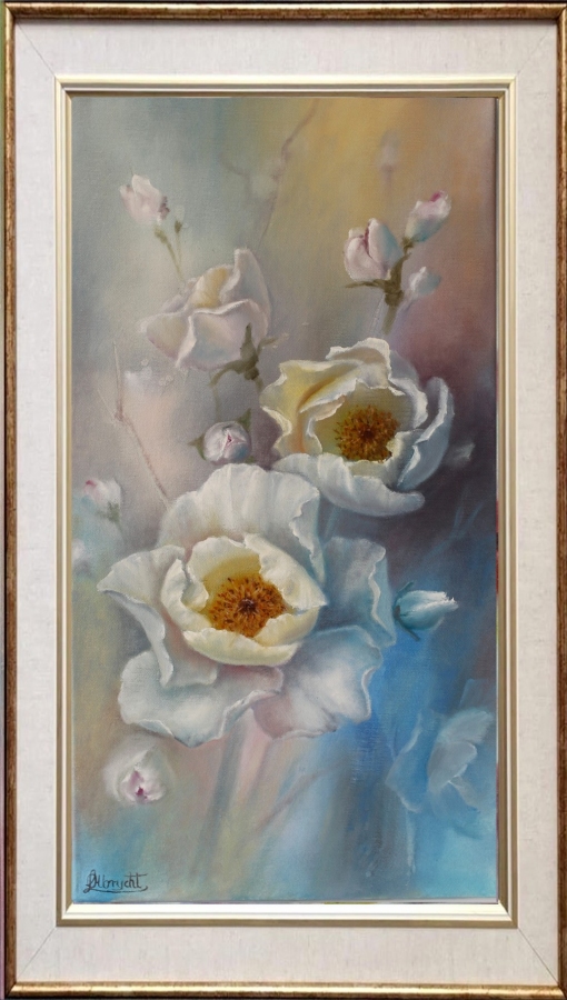 Obraz namalowany został ręcznie w technice olejnej na płótnie bawełnianym naciągniętym na blejtram (drewnianą ramę). Zabezpieczony satynowym werniksem (nie błyszczy). Sygnowany. Wymiary: 60X30 cm. Autor: Lidia Olbrycht /certyfikat autorski. Boki obrazu są zamalowane zgodnie z jego kolorystyką, co powoduje, że równie dobrze prezentuje się bez ramy. Ramy pokazane na zdjęciach są tylko propozycją ewentualnej oprawy. Gotowy do zawieszenia (z tyłu przytwierdzona metalowa zawieszka "krokodylek") Przesyłka kurierska ubezpieczona. Istnieje możliwość namalowania podobnego obrazu w dowolnym rozmiarze lub jego wydruk artystyczny Giclee Print (w tym celu proszę o kontakt). Kolory na monitorze mogą nieznacznie różnić się od kolorów obrazu w rzeczywistości - zależy to od typu i ustawień monitora.