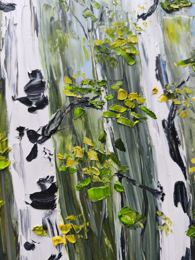 Przedstawiam obraz olejny 70x50 cm, malowany za pomocą szpachli co nadaje fakturę i ekspresji obrazu. Obraz posiada ramkę w ciepło-złotym kolorze,