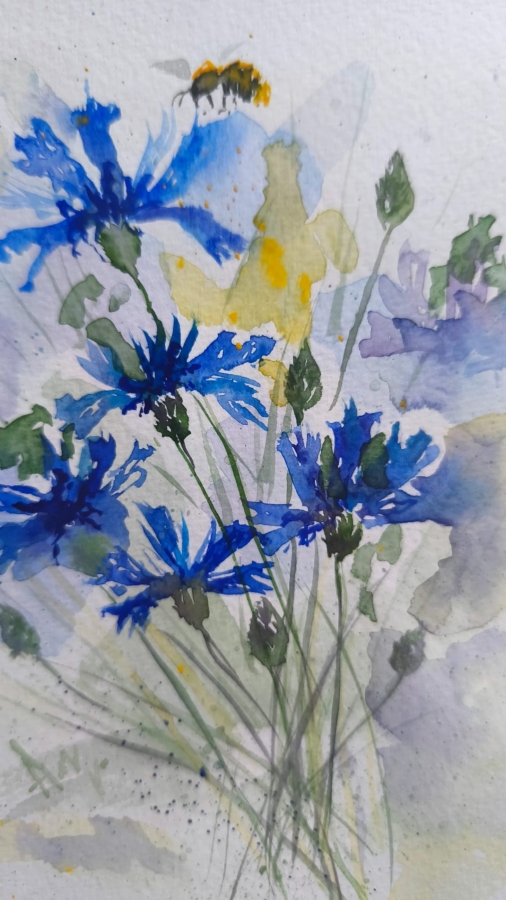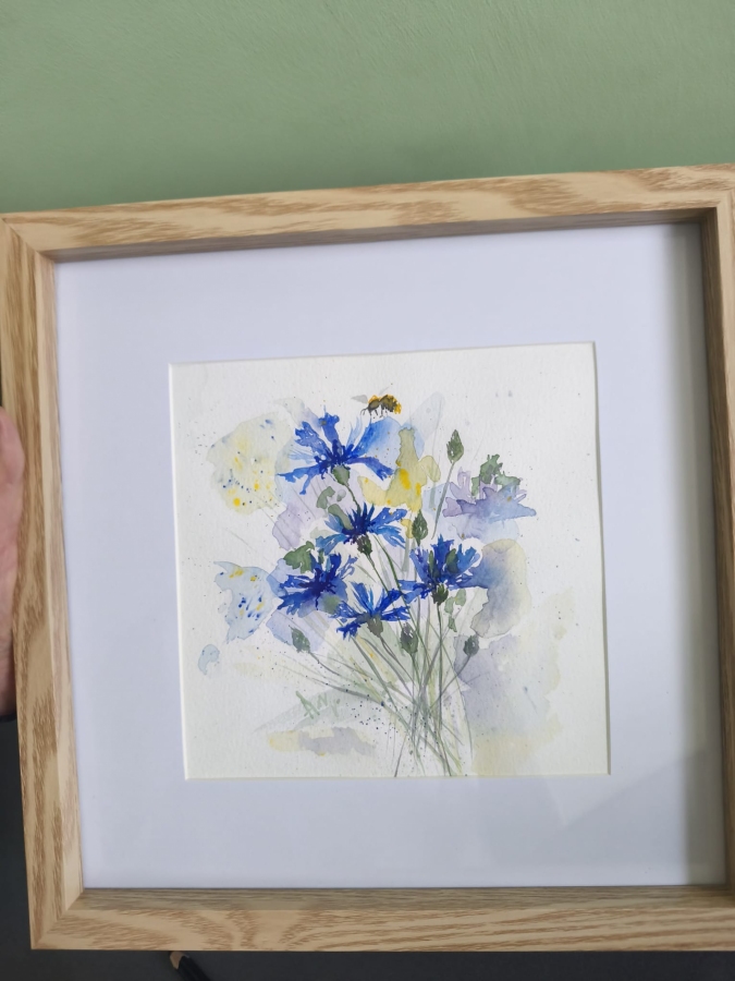 Obraz Chabry - namalowany Akwarelą Rósa na papierze 100% cellulose, posiada passepartut i ramka 30x30 cm.