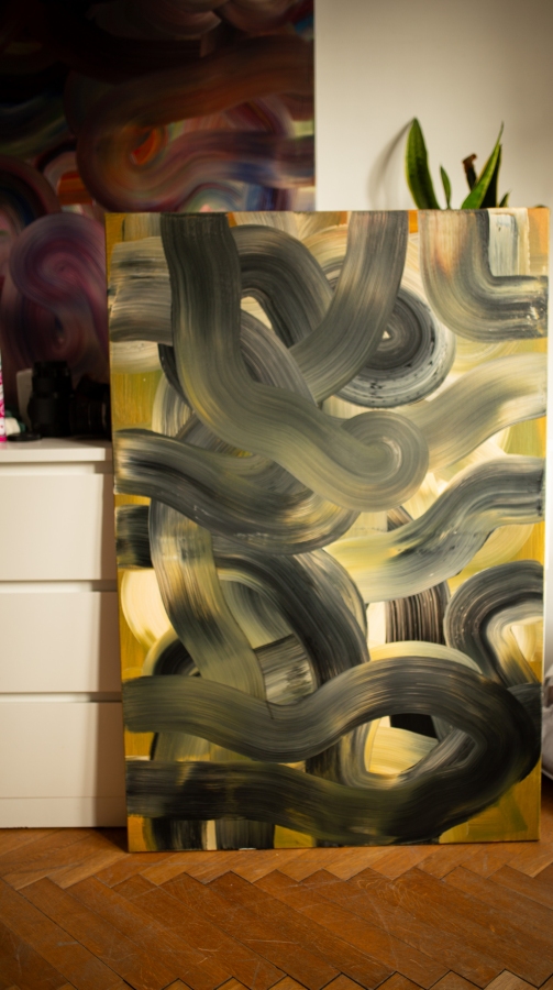 Akryl na płótnie, 120/80cm, sygnowany na odwrocie, rok powstania 2025. Obraz Dominika Smolika to ekspresyjna, intensywna kompozycja abstrakcyjna, w której kolor i gest budują emocjonalne napięcie. Artysta pracuje warstwowo, łącząc spontaniczny ruch pędzla z bardziej kontrolowanymi strukturami. Dzięki temu obraz żyje – pulsuje energią, ale jednocześnie zachowuje wyczuwalny porządek. To malarstwo, które działa intuicyjnie na odbiorcę: najpierw przyciąga kolorem, a potem pozwala zauważyć rytm, głębię i ukryte relacje między formami. Praca świetnie sprawdzi się zarówno w nowoczesnych, jak i bardziej eklektycznych wnętrzach, wprowadzając mocny akcent i nadając przestrzeni charakter. Smolik buduje swój język malarski w oparciu o ekspresjonizm, ale z wyraźnym naciskiem na współczesną estetykę – dzięki temu jego prace wpisują się w aktualne trendy międzynarodowego rynku sztuki.