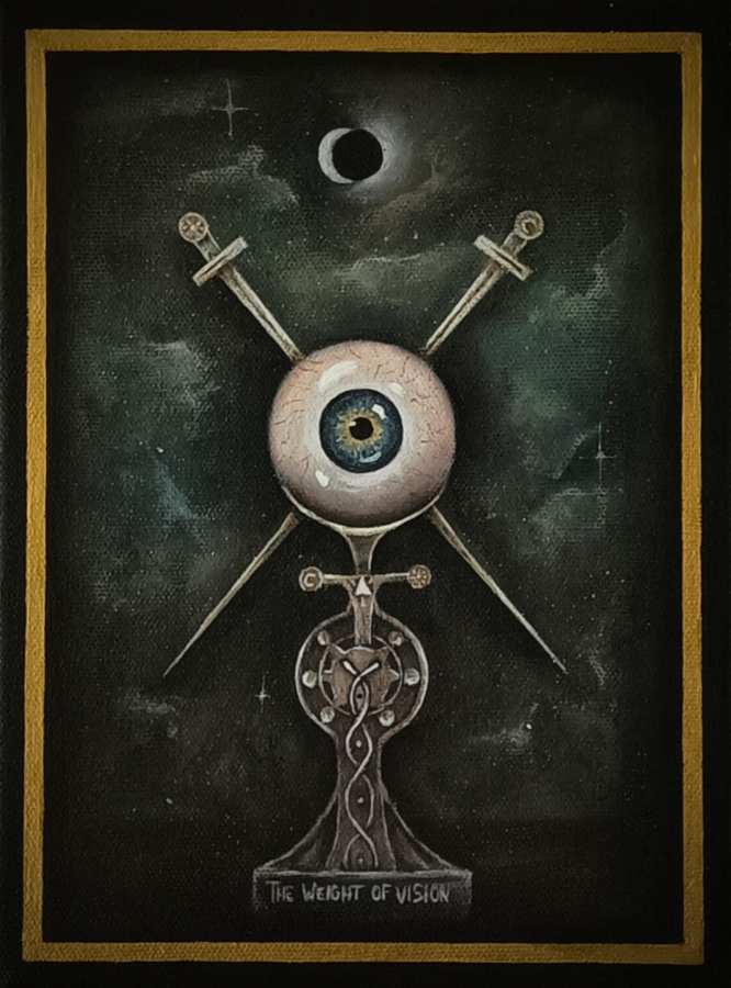 Czy ciężar wizji można zmierzyć? Ta jakby średniowieczna kompozycja mówi o perspektywie i o tym jak ważną rolę pełni nasze oko, nie to co widzi, tylko jak to widzi.