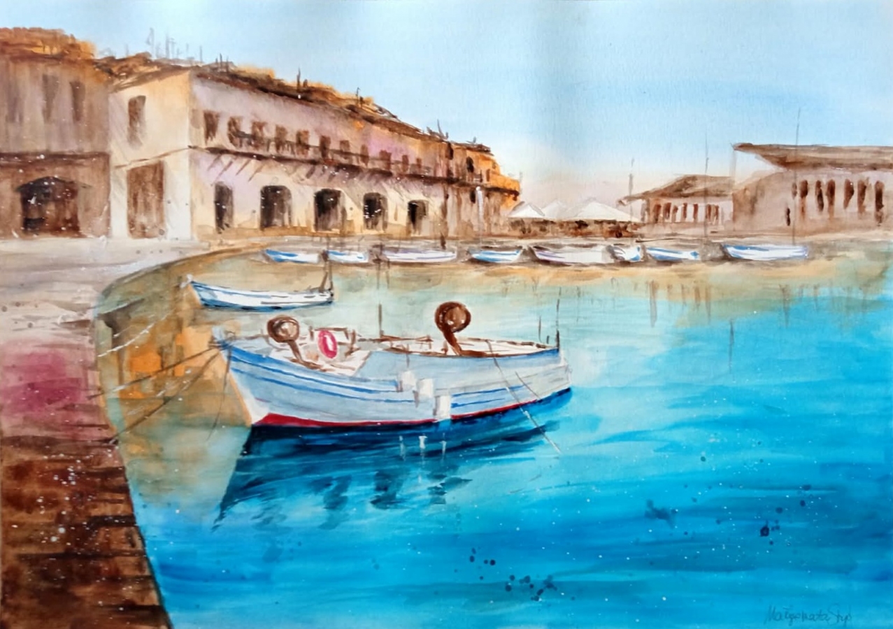 morzeprzystańAkwarelaobraznaturapejzaż morski