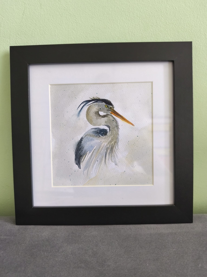 Delikatna akwarela Czapli, to kolejny obraz do zestawu z ptakami, proszę sprawdzić wszystkie oferty )).