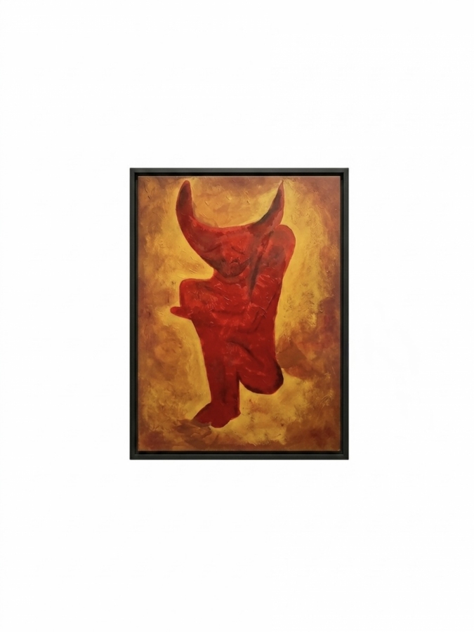 Zanurz się w hipnotyzującym świecie ognia i legend z obrazem "Czarci Ogień". To dzieło sztuki, o wymiarach idealnie dopasowanych do nowoczesnego wnętrza, przedstawia dynamiczną i tajemniczą postać biesia, wyłaniającą się z tętniących, żółto-pomarańczowych płomieni.
