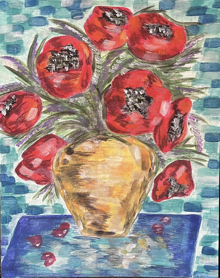 Obraz został namalowany farbami akrylowymi. Obraz jest wykonany na podobraziu malarskim. Motyw maków czerwonych jest mi bliski. Niezwykle urzekają mnie maki, zachwycają ich kolory.