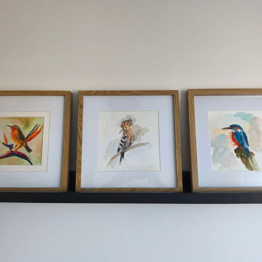 Obraz Dudek - namalowany Akwarelą Rósa na papierze 100% cellulose, posiada passepartut i ramka 30x30 cm.