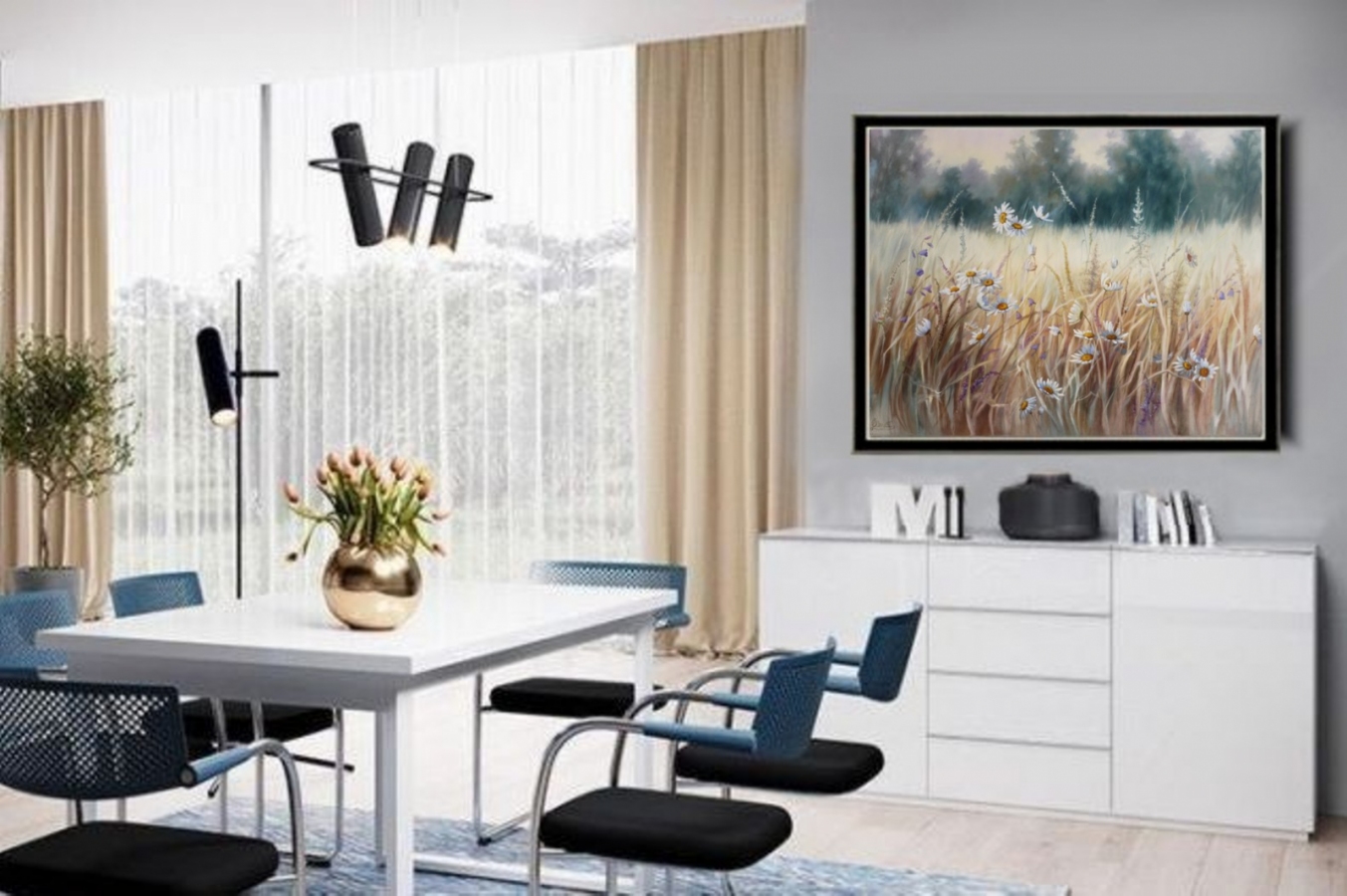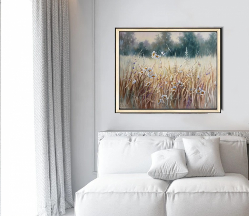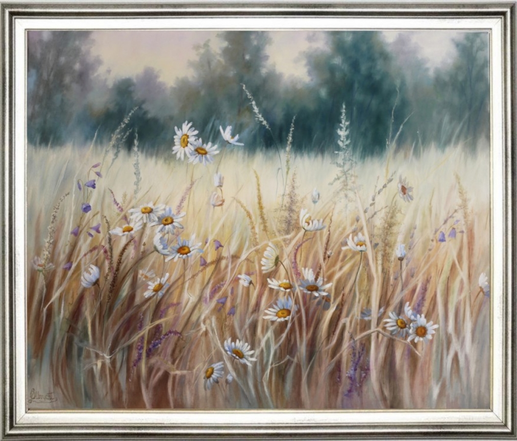 Obraz namalowany ręcznie profesjonalnymi farbami olejnymi na płótnie bawełnianym na blejtramie (drewnianej ramie). Sygnowany. Zabezpieczony zostanie (przy sprzedaży) satynowym werniksem (nie błyszczy). . Wymiary: 80X100 cm Autor: Lidia Olbrycht Na życzenie wystawiany jest certyfikat autorski. Boki obrazu są zamalowane zgodnie z jego kolorystyką, co powoduje, że równie dobrze prezentuje się bez ramy. Pokazane na zdjęciach ramy są tylko propozycją ewentualnej oprawy. Gotowy do zawieszenia (z tyłu obrazu przymocowana zawieszka "krokodylek"). Koszt przesyłki (ubezpieczonej) kurierem. Istnieje możliwość namalowania podobnego obrazu w dowolnym rozmiarze lub jego wydruk artystyczny Giclee (w tym celu proszę o kontakt). Kolory obrazu widoczne na Państwa monitorze mogą nieznacznie różnić się od kolorów obrazu w rzeczywistości - zależy to od typu i ustawień monitora.