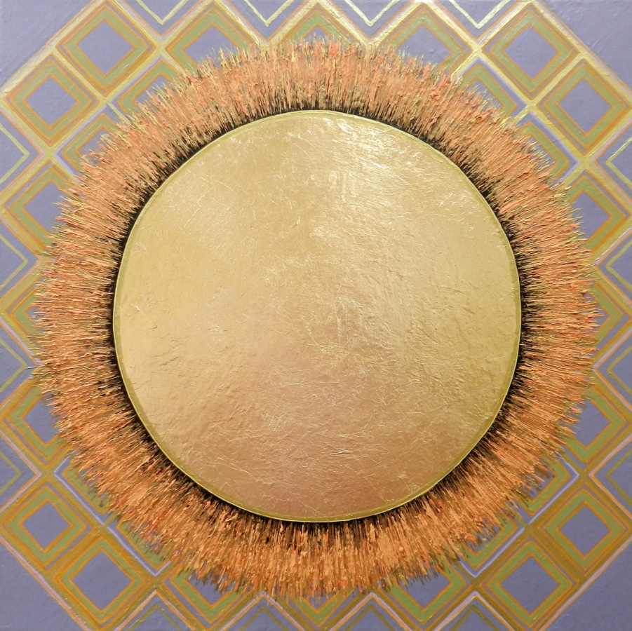 obraz malowany farbami akrylowymi , na płótnie . Złocenia wykonane farbami metalicznymi i płatkowym szlagmetalem. Tło obrazu w odcieniach fioletu. Rozmiar obrazu 50x50 cm. Sygnatury autorskie umieszczone z tyłu pracy. ------------Art by Jolanta Frankiewicz-----------