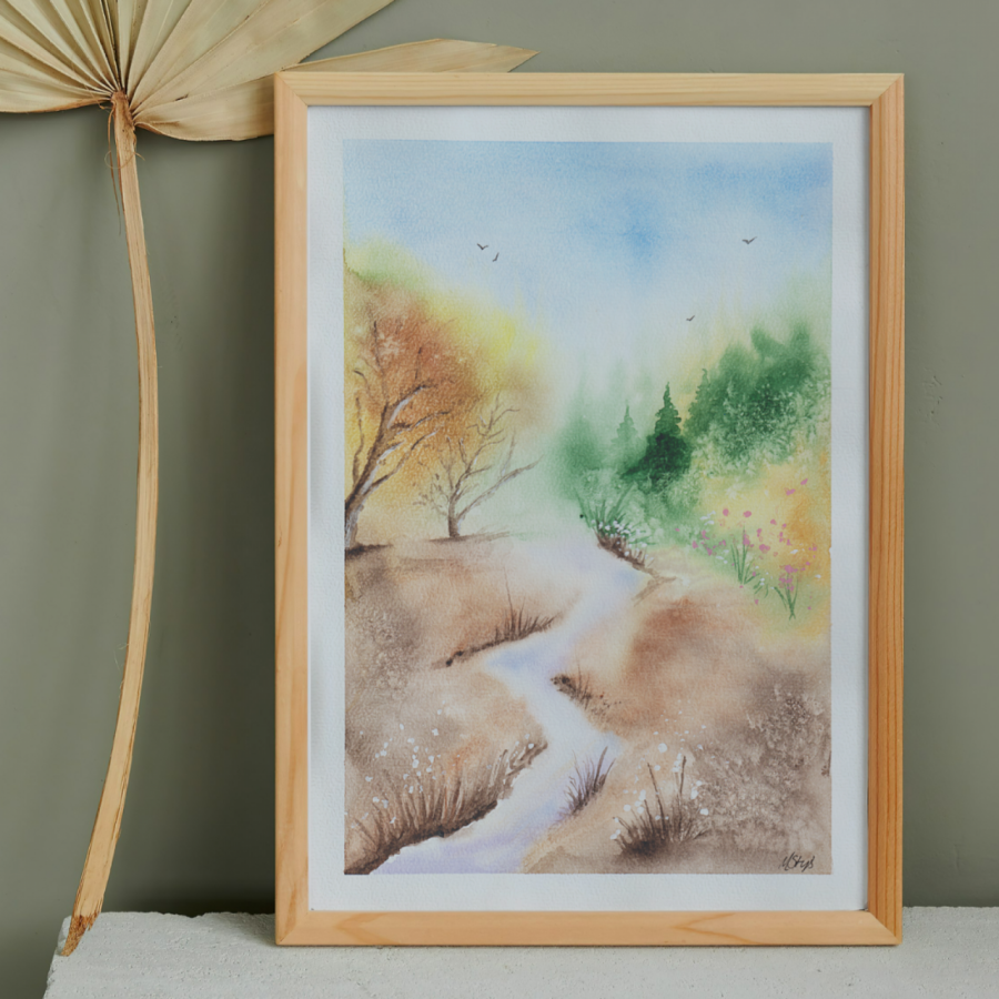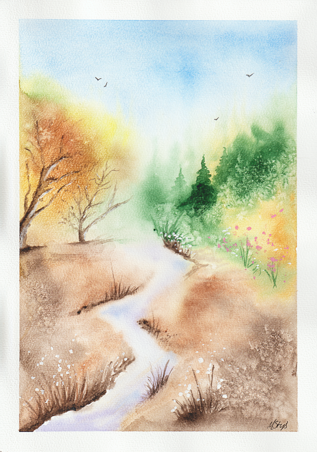 Akwarela na papierze celulozowym, bez ramy (oprawa we własnym zakresie). Praca zabezpieczona werniksem do akwareli.