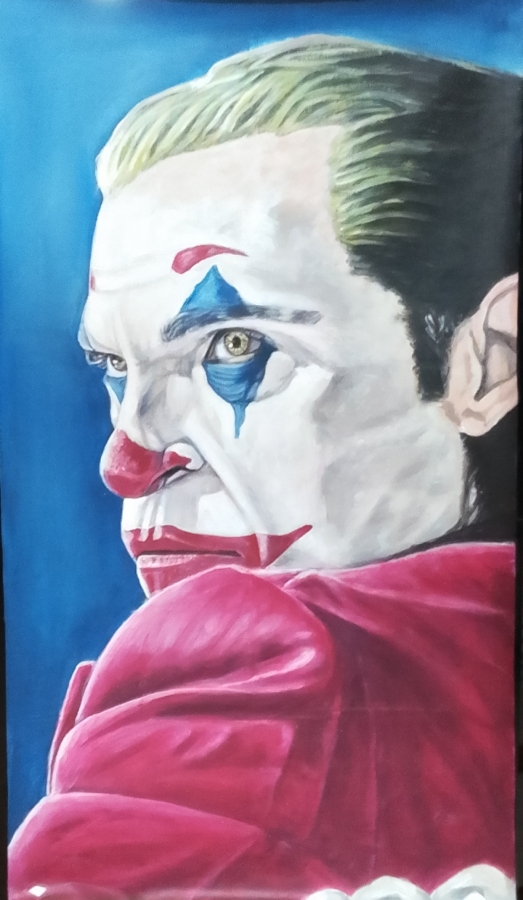 Praca na płótnie wykonana farbami akrylowych postać jokera z filmu polecam twórca