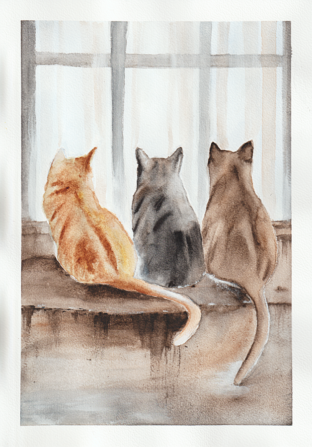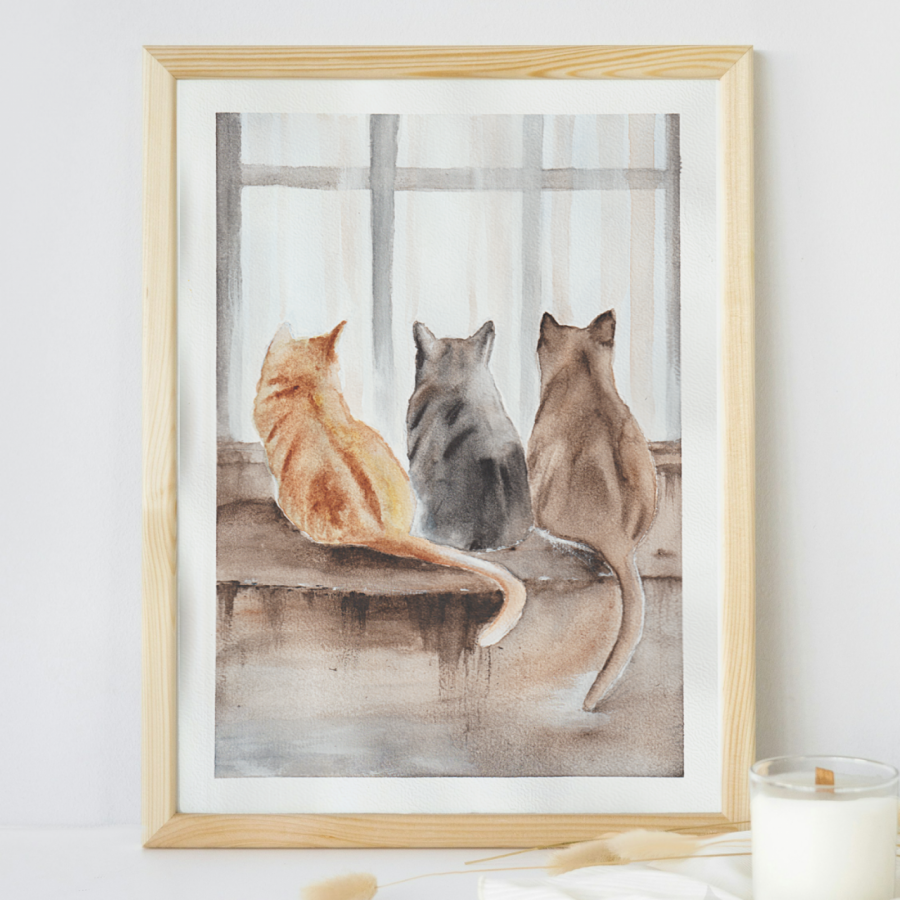 kotkotyAkwarelaobrazprezentupominekna prezent