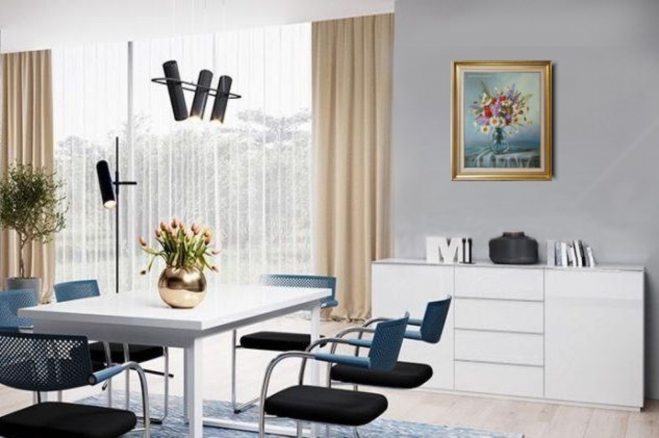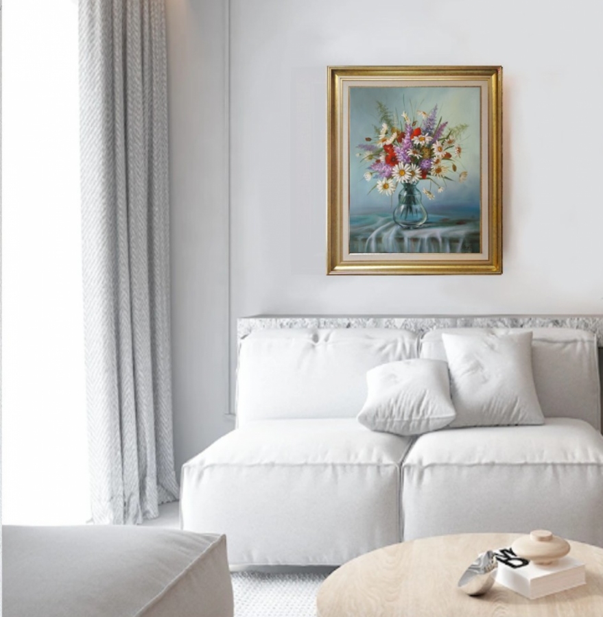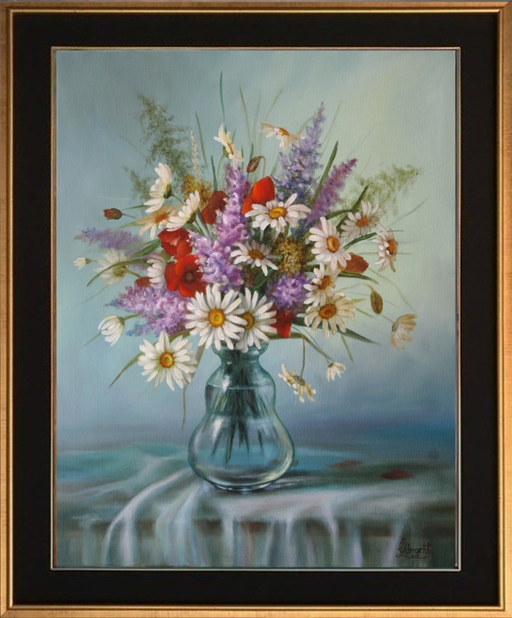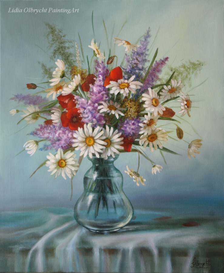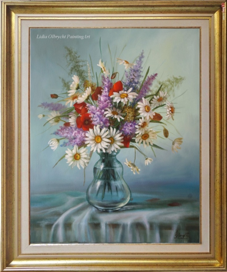 Prezentowany obraz namalowany został profesjonalnymi farbami olejnymi na płótnie bawełnianym naciągniętym na blejtram (prod. polska). Sygnowany. Zabezpieczony został satynowym werniksem (nie błyszczy). Wymiary: 50X60 cm Autor: Lidia Olbrycht Na życzenie wystawiany jest certyfikat autorski. Cena obrazu nie obejmuje ramy. Przedstawione na zdjęciach ramy są tylko propozycją oprawy. Gotowa do kupienia jest rama na zdjęciu nr 3 (drugie zdjęcie obrazu w ramie) w cenie 470 zł. Wysyłka kurierska ubezpieczona - 35 zł. Kolory widoczne na Państwa monitorze mogą różnić się nieznacznie od kolorów obrazu w rzeczywistości -zależy to od ustawień i typu monitora.