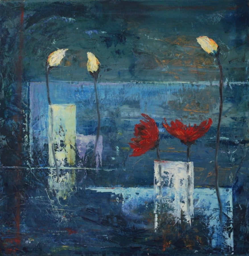 Kwiaty - autorski obraz olejny. Wymiary: 40 cm x 40 cm. Sygnowany. Płótno na sosnowym blejtramie. Na życzenie do obrazu dołączony Certyfikat autentyczności.