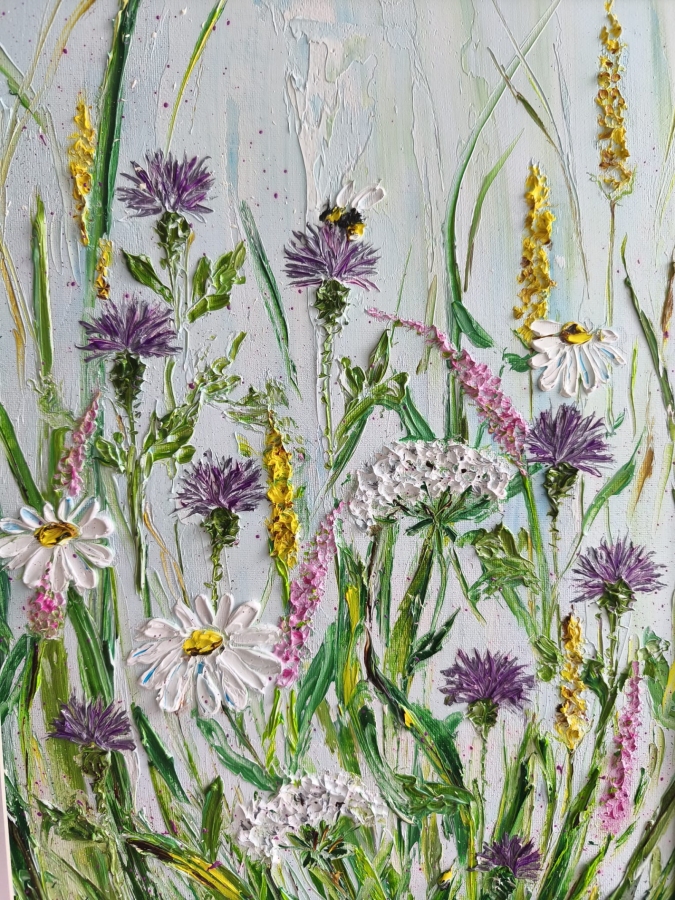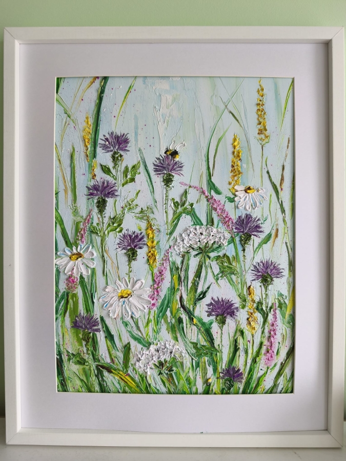 Witam, obraz powstał z inspiracji wspomnień lata, dzieciństwa, spędzenia wakacji u babci na wsi. Obraz namalowany na płycie malarskiej, olejnymi farbami, technice impasto, co nadaje fakturę obrazu. Obraz posiada ramkę z Passe-partout , jak na zdjęciu.