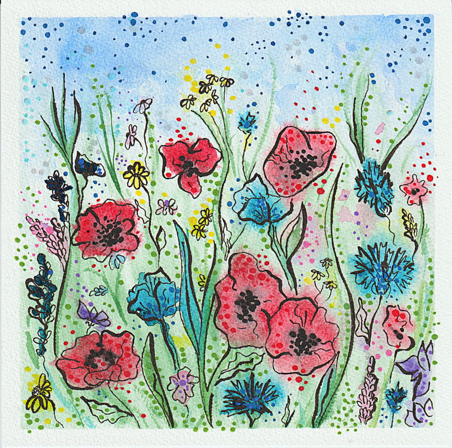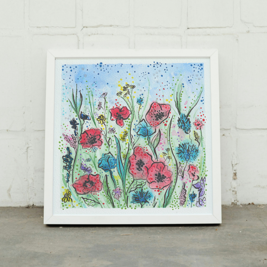 Akwarela i cienkopis na papierze celulozowym. Wszystkie moje akwarele są zabezpieczone werniksem do akwareli, który chroni przed wilgocią i kurzem.
