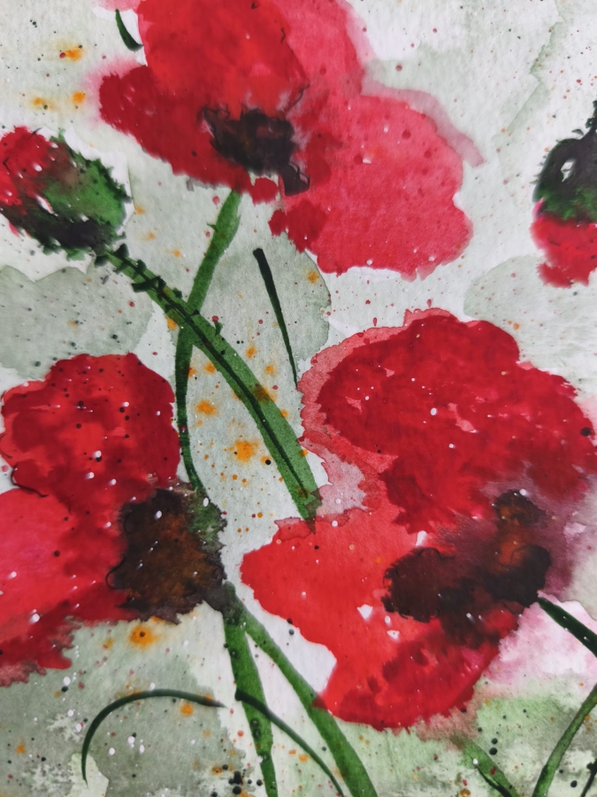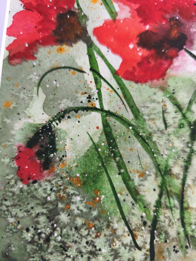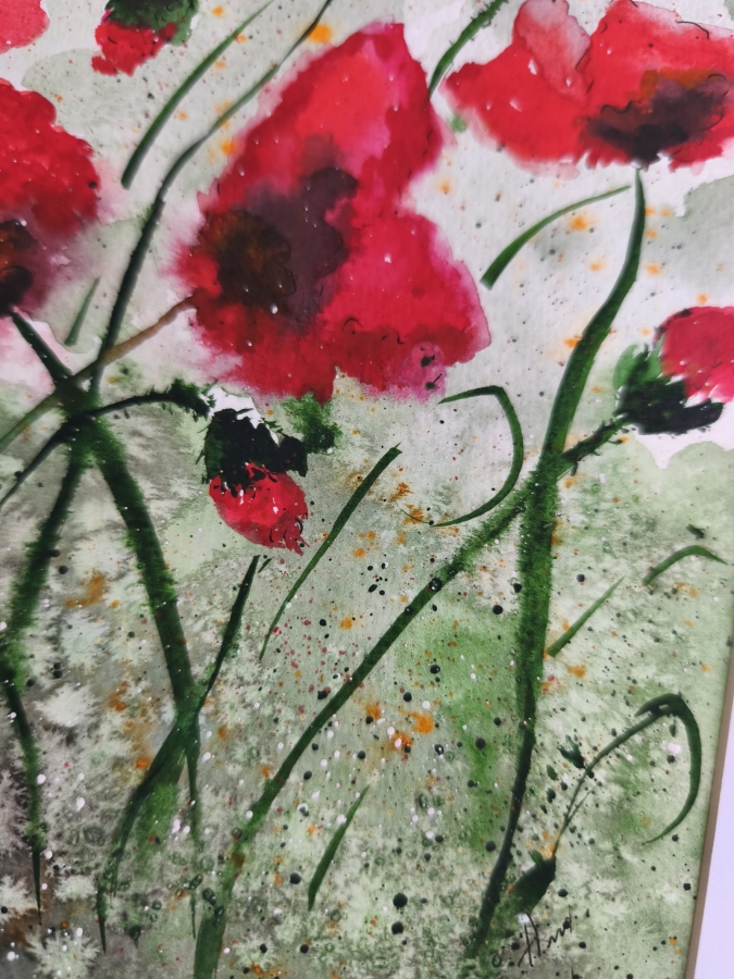 Witam, obraz Maki na łące powstał Akwarelą Rósa na papierze 100% cellulose, posiada passepartut i ramka 30x30 cm.