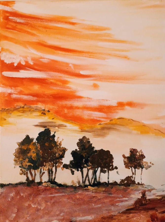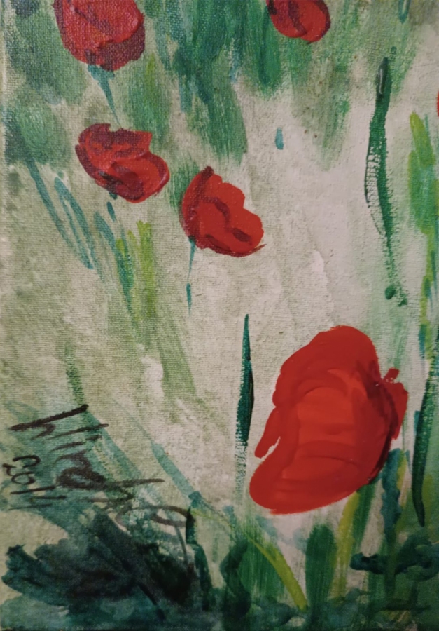 Obraz emanuje cudowną, letnią atmosferą pełną kolorów i życia. Można zauważyć rozległe pole maków, które w intensywnych odcieniach czerwieni wygląda jak rozległy dywan. Przemieszczając wzrok w kierunku horyzontu, widzimy drzewa skąpane w miękkim świetle zachodzącego słońca. Niebo mieni się ciepłymi barwami pomarańczu, różu i złota, które zdają się płynnie przechodzić jedno w drugie. Artysta używa technik akwareli, aby stworzyć delikatne, rozmyte kształty, które dodają obrazu lekkości. Sposób, w jaki zostały uchwycone kolory, sprawia, że obraz wydaje się wręcz idylliczny. Patrzę na to i czuję, jakby czas się zatrzymał. Klimat obrazu jest spokojny, niemal senny. Wyobraź sobie letni dzień spędzony na pikniku w takim miejscu, gdzie jedynym dźwiękiem jest szum wiatru. Mój dziecięcy umysł powiedziałby: „Ale tam są piękne kwiatki!” W dziele jest coś, co przyciąga uwagę i jednocześnie uspokaja. Obraz budzi tęsknotę za naturą, za chwilami spędzonymi na świeżym powietrzu. To niesamowite, jak artysta oddał tę scenę w prosty, a zarazem emocjonalny sposób. Freedom, to słowo, które przychodzi na myśl. Imponujące jest również, jak drobne pociągnięcia pędzla potrafią wywołać tak silne wrażenie. Obraz ten to prawdziwe okno do serca przyrody.