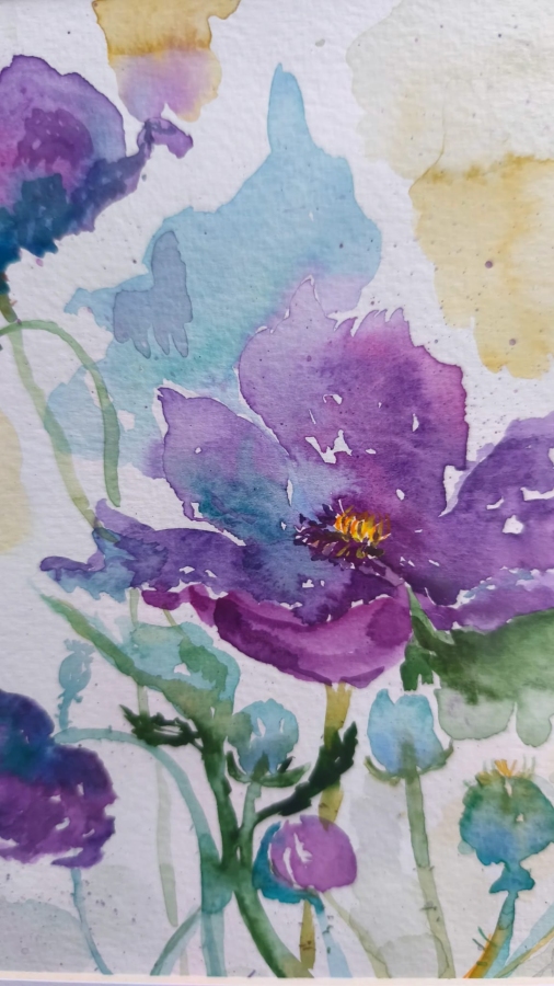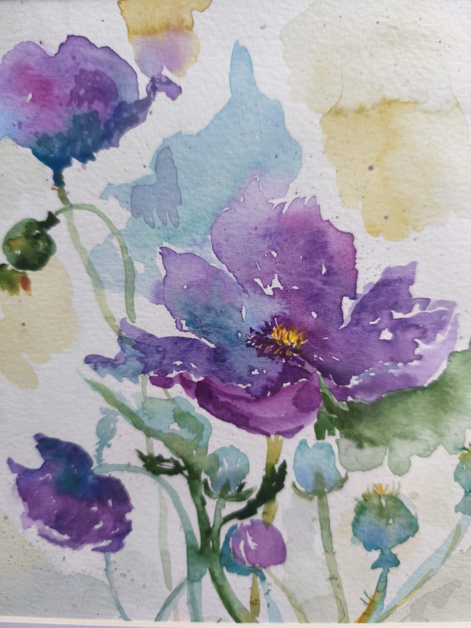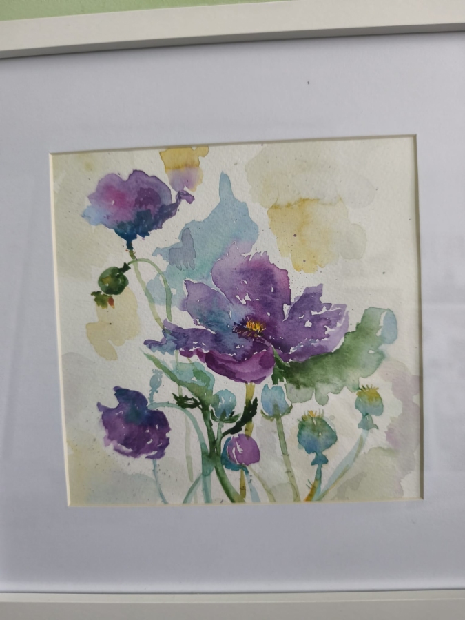 Obraz Maki - namalowany Akwarelą Rósa na papierze 100% cellulose, posiada passepartut i ramka 30x30 cm.