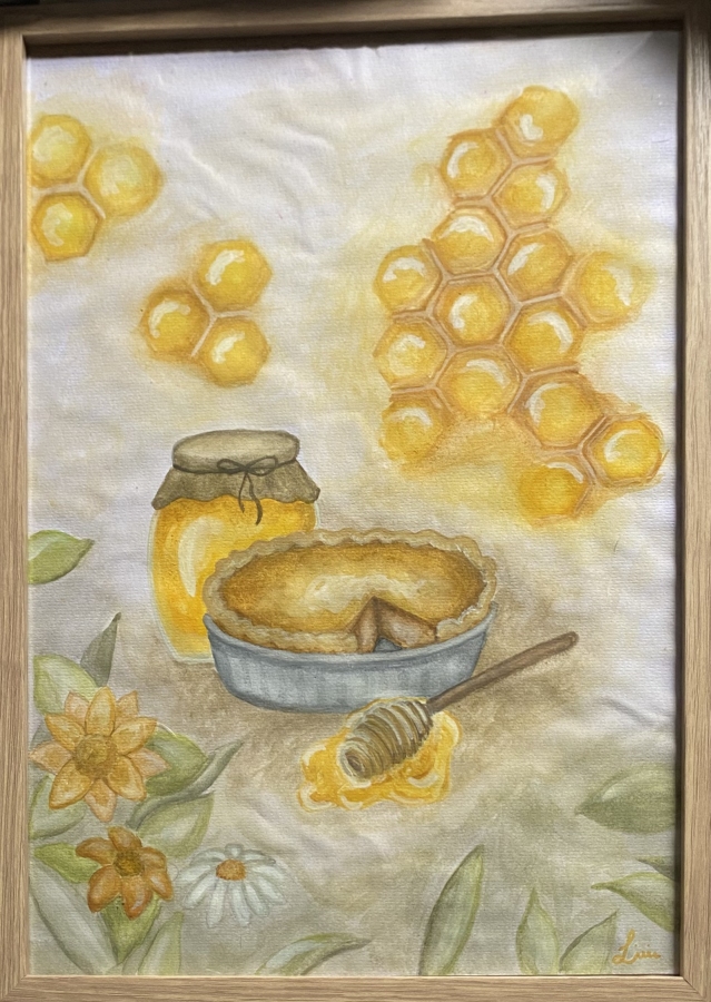 Ten obraz powstał z potrzeby uchwycenia czegoś spokojnego i ciepłego. Podczas malowania zależało mi nie tyle na odwzorowaniu przedmiotów, co na oddaniu nastroju — miękkiego światła, delikatności i prostych przyjemności. Motyw miodu, wypieków i kwiatów tworzy spokojną, domową atmosferę, która dobrze odnajdzie się w kuchni, jadalni lub miejscu, gdzie liczy się ciepło i harmonia.