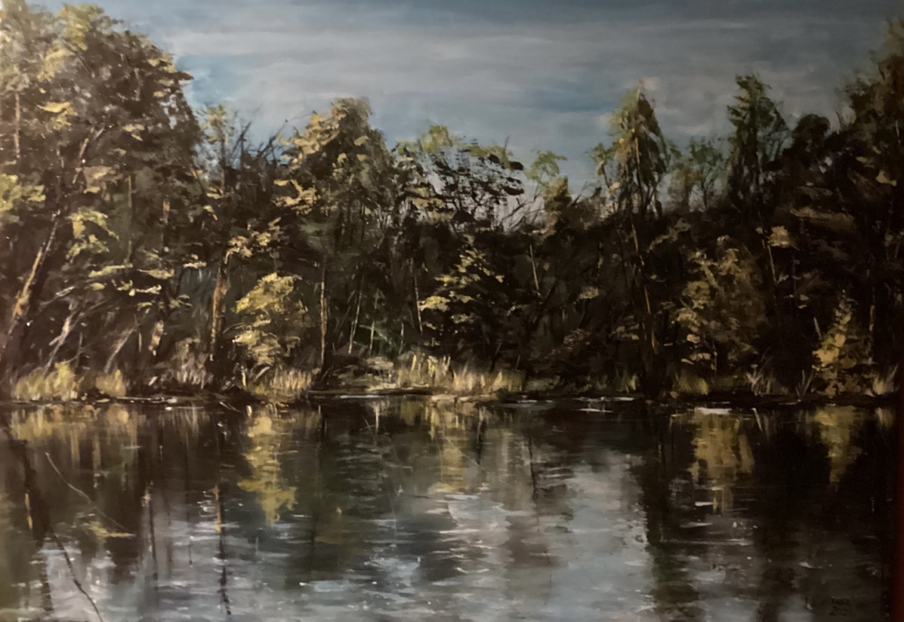 Obraz na płótnie, namalowany w roku 2021, utrzymany w barwach ziemi i odcieniach błękitu. Inspiracją był spacer w słoneczny, letni dzień. Swobodny dukt pędzla oraz optymistyczne barwy tworzą kompozycję pełną światła i dobrej energii.Idealny do wnętrz o ciepłym, klasycznym wystroju. Pomysł na prezent lub oryginalny element dekoracji wnętrza.