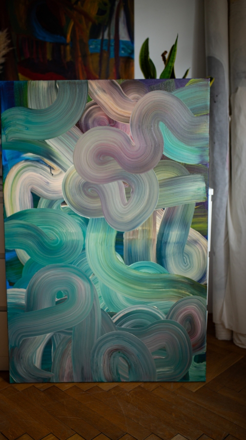Akryl, na płótnie, 120/80cm, sygnowany na odwrocie, rok powstania 2025. Obraz Dominika Smolika to ekspresyjna, intensywna kompozycja abstrakcyjna, w której kolor i gest budują emocjonalne napięcie. Artysta pracuje warstwowo, łącząc spontaniczny ruch pędzla z bardziej kontrolowanymi strukturami. Dzięki temu obraz żyje – pulsuje energią, ale jednocześnie zachowuje wyczuwalny porządek. To malarstwo, które działa intuicyjnie na odbiorcę: najpierw przyciąga kolorem, a potem pozwala zauważyć rytm, głębię i ukryte relacje między formami. Praca świetnie sprawdzi się zarówno w nowoczesnych, jak i bardziej eklektycznych wnętrzach, wprowadzając mocny akcent i nadając przestrzeni charakter. Smolik buduje swój język malarski w oparciu o ekspresjonizm, ale z wyraźnym naciskiem na współczesną estetykę – dzięki temu jego prace wpisują się w aktualne trendy międzynarodowego rynku sztuki.
