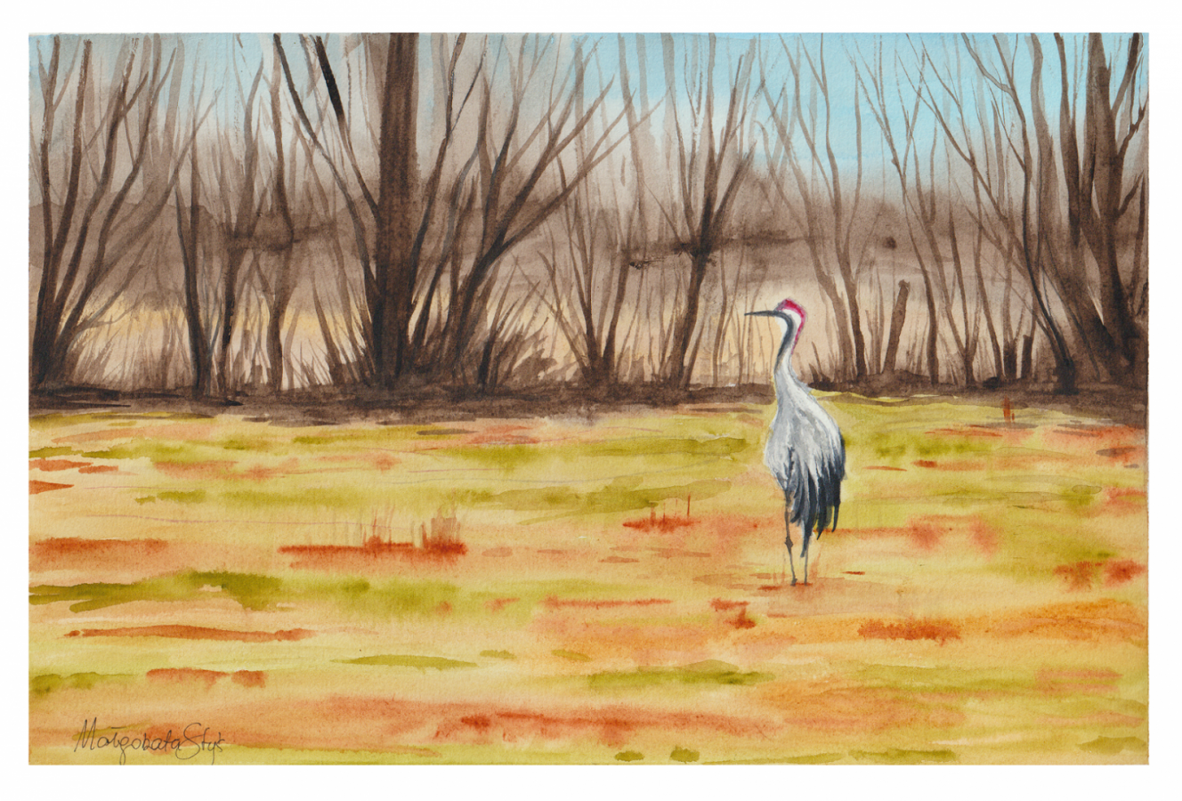 Akwarela na wysokiej jakości papierze 100% bawełnianym. Oprawa we własnym zakresie, obraz bez ramy. Praca zabezpieczona jest werniksem do akwareli, który chroni przed kurzem, wilgocią, blaknięciem kolorów.