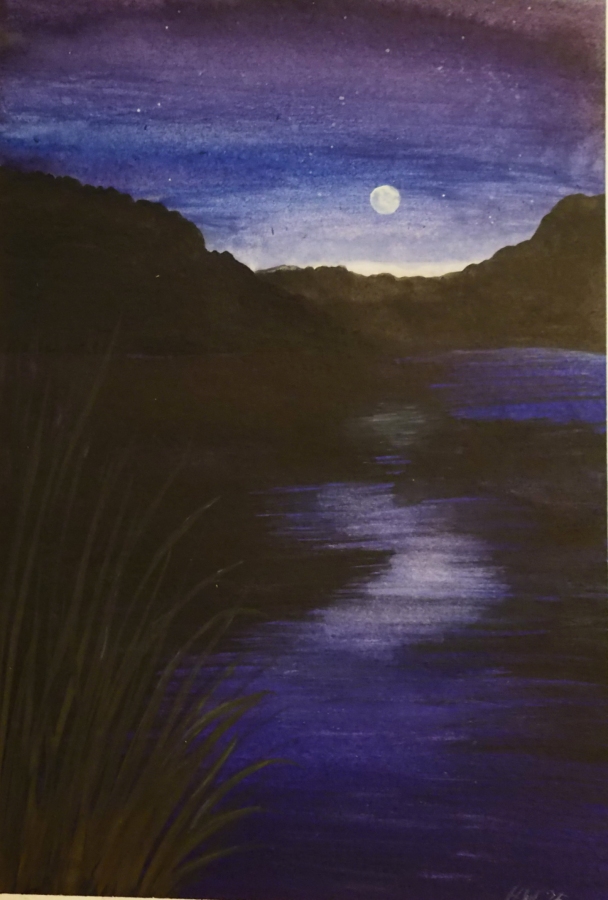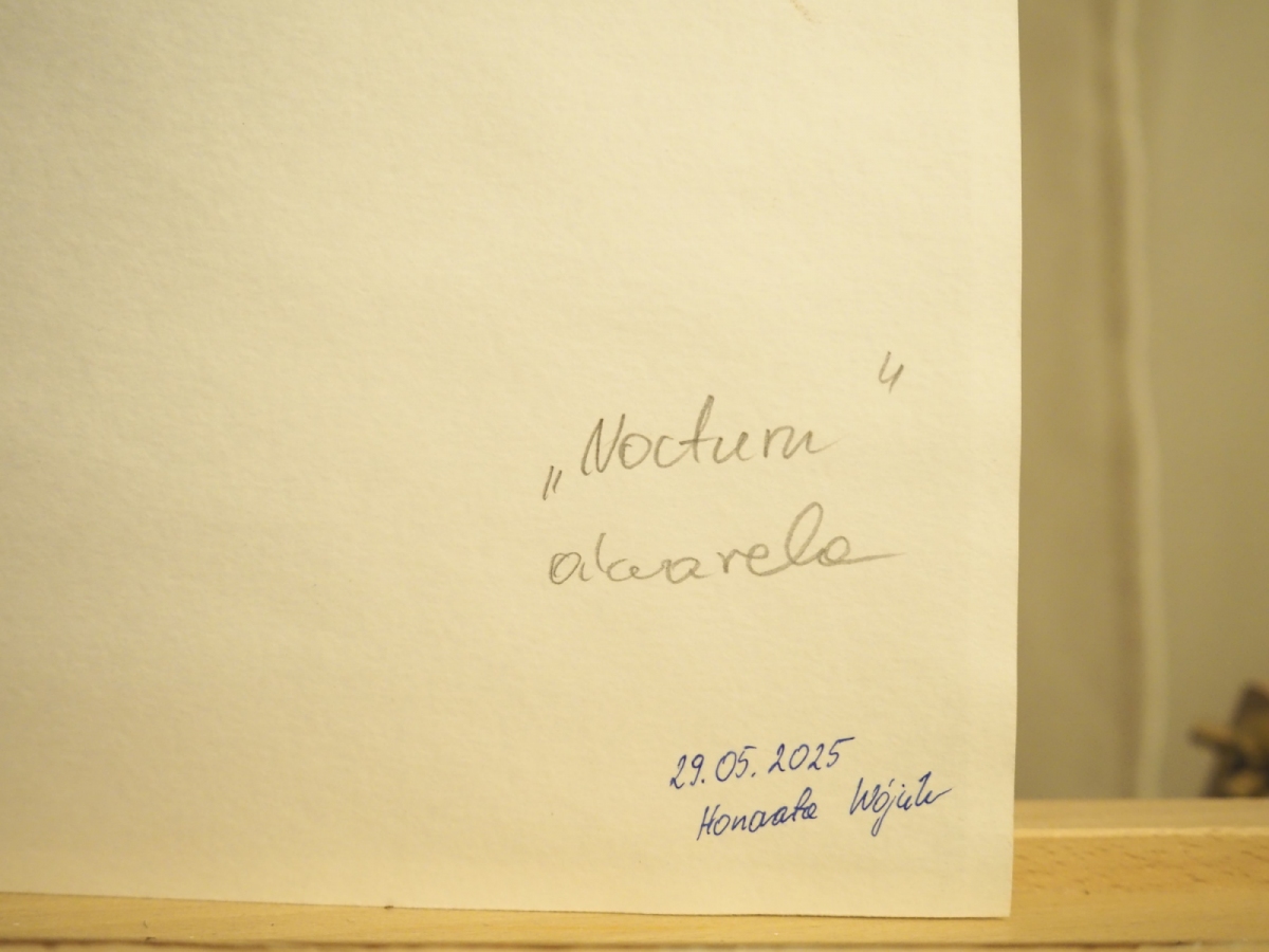 Nostalgiczna akwarela w czarnej ramce do powieszenia lub postawienia. Jest wynikiem rozmowy Marcina i Shelly o muzyce klasycznej. Prowadzi wzrok delikatną serpentyną po księżyc. Nie ożywi wnętrza, ale doda mu majestatu. Dla człowieka, co ma drugą, myślicielską stronę duszy to będzie idealny obraz na ścianę do gabinetu.