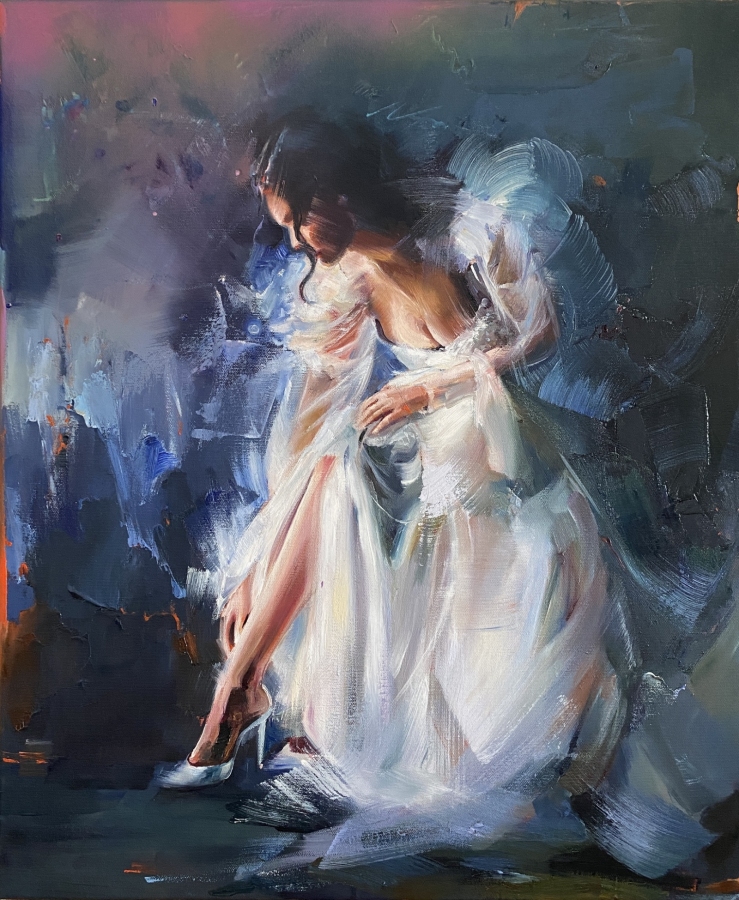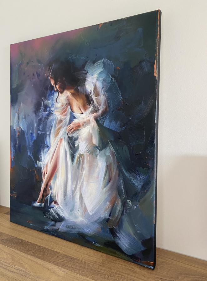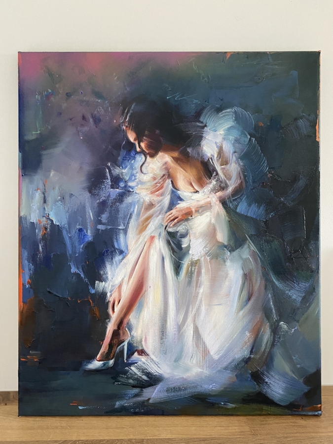 Obraz pt. NOCY CZAR • Obraz malowany farbami olejnymi na płótnie bawełnianym o wymiarze 60×50cm, rok wykonania 2025 • Autor obrazu Jolanta Strzelczyk. Sygnowany na odwrocie - NOCY CZAR. Jolanta Strzelczyk 2025 • Zabezpieczony werniksem, który nasyca kolory oraz chroni farbę na lat. • Boki i krawędzie są pomalowane na kolor czarny co estetycznie zamyka całość obrazu • Gotowy do powieszenia – wyposażony w zamocowaną zawieszkę umożliwiający bezpieczny montaż • Obraz przed wysyłką zabezpieczony w sztywny karton oraz folię.