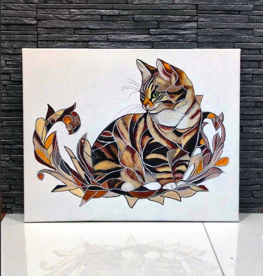 Witam Mam do sprzedania obraz kotka na płótnie Rozmiar 40x50 cm Farby akrylowe Rok 2025 Inspiracja z internetu