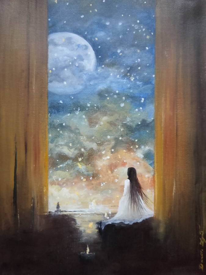 Pejzaż surrealistyczny z czterema kamiennymi obeliskami