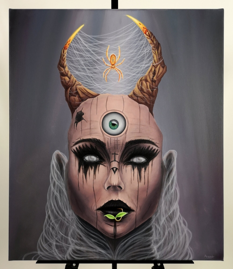 Obraz akrylowy na płótnie bawełnianym, malarstwo surrealistyczne. Praca sygnowana: z przodu - podpis artysty „Asensir”, z tyłu – tytuł / podpis, imię i nazwisko artysty / rok powstania. Praca nie zawiera ramy, boczne krawędzie płótna zamalowane estetycznie na czarno - obraz gotowy do powieszenia. Wymiary: 70x60x2cm. Obrazy artysty są spojrzeniem do świata snów. Cykl „E” to osobista seria prac, w której artysta konfrontuje się z własnymi emocjami, kruchością i doświadczeniami. Rozpadające się postaci, zatrzymane w jednej, melancholijnej chwili, pokazują balans pomiędzy mocą a słabością, brutalnością a spokojem. To szczera refleksja o tym, jak to jest być człowiekiem - o naszych pęknięciach, o miejscach, w których się gubimy, i o próbie zrozumienia siebie w chaosie uczuć. Pomimo mocnego ładunku emocjonalnego, prace utrzymane są w barwach, które działają jak subtelny filtr - pokazują, że nawet w najtrudniejszym doświadczeniu można dostrzec refleksję czy szansę na pogodzenie się z samym sobą. Prace artysty znajdują się w prywatnych kolekcjach w Polsce oraz m.in. w USA, Japonii, RPA, Niemczech, Hiszpanii, Francji, Izraelu.