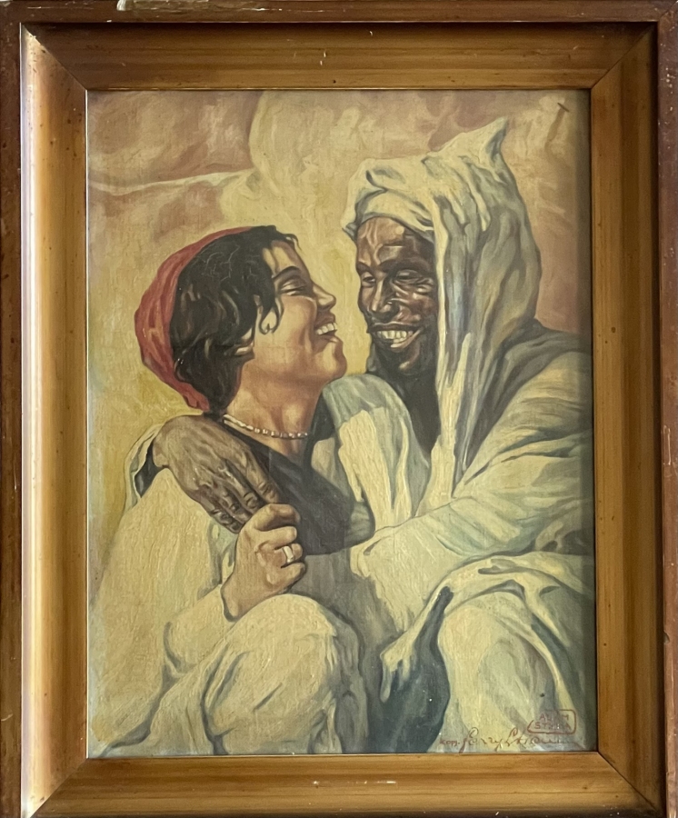 Adam Styka – „Para” (kopia), olej na desce, ok. 1933 r. Do sprzedania stary obraz olejny przedstawiający scenę inspirowaną obrazem „Para” autorstwa Adama Styki. Praca została wykonana przez Jerzego Etienne. Obraz ma wymiary ok. 47 × 39 cm (z ramą). Oprawiony jest w solidną, drewnianą ramę z epoki, zachowaną w bardzo dobrym stanie. Kolory żywe, obraz nieuszkodzony, gotowy do ekspozycji. To interesująca kopia międzywojenna, która oddaje klimat malarstwa orientalnego początku XX wieku. Może być ciekawym dodatkiem do kolekcji lub eleganckim elementem wystroju wnętrza. Stan: bardzo dobry, bez przetarć ani ubytków. Technika: olej na drewnie. Wymiary: 32 × 39 cm (bez ramy). Sygnatura: „Kopia. Jerzy Etienne”. Możliwa wysyłka lub odbiór osobisty.