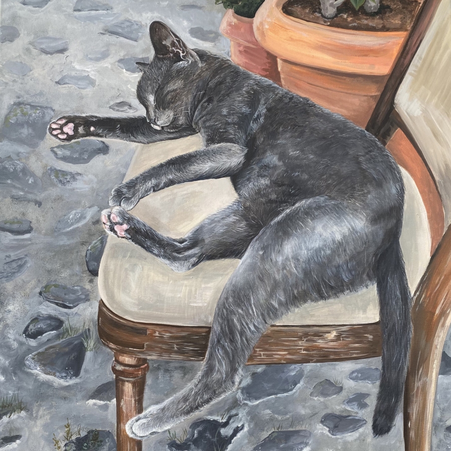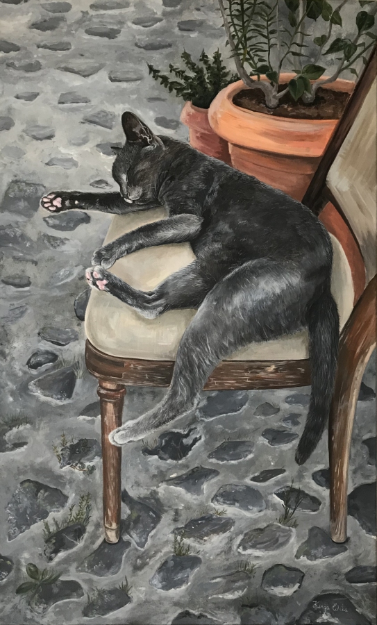 Przedstawiam wesołego kociaka, który przemierza Santorini – od stolika do stolika, zawsze w poszukiwaniu pysznego kąska. Po każdym posiłku nie może obyć się bez drzemki – najlepiej na wygodnym fotelu, choć czasem zadowoli się też krzesłem! To obraz pełen ciepła, humoru i beztroski, przypominający nam, że w podróży warto cieszyć się drobnymi przyjemnościami – i od czasu do czasu pozwolić sobie na chwilę odpoczynku.