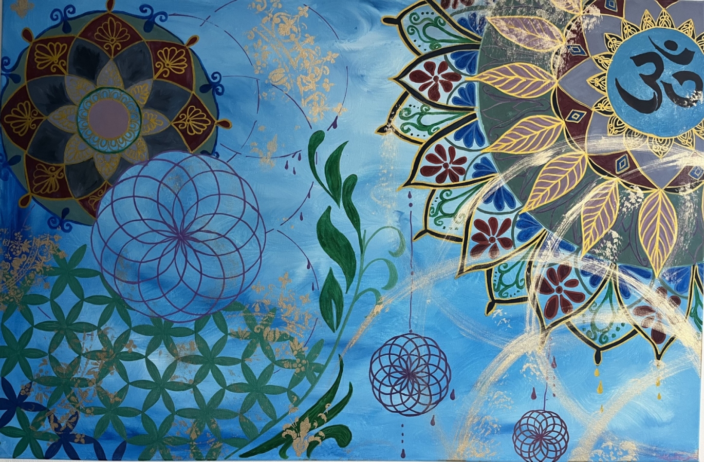 Ten obraz to przestrzeń, która uspokaja i przyciąga wzrok jednocześnie. Połączenie turkusu, głębokiej zieleni i złotych detali tworzy efekt elegancji i harmonii. Motywy mandali oraz symbol „Om” wprowadzają do wnętrza atmosferę równowagi, światła i dobrej energii. To propozycja dla osób, które chcą, aby ich przestrzeń była nie tylko estetyczna, ale też pełna znaczenia. Idealnie sprawdzi się w salonie, sypialni, gabinecie, przestrzeni jogi lub medytacji.