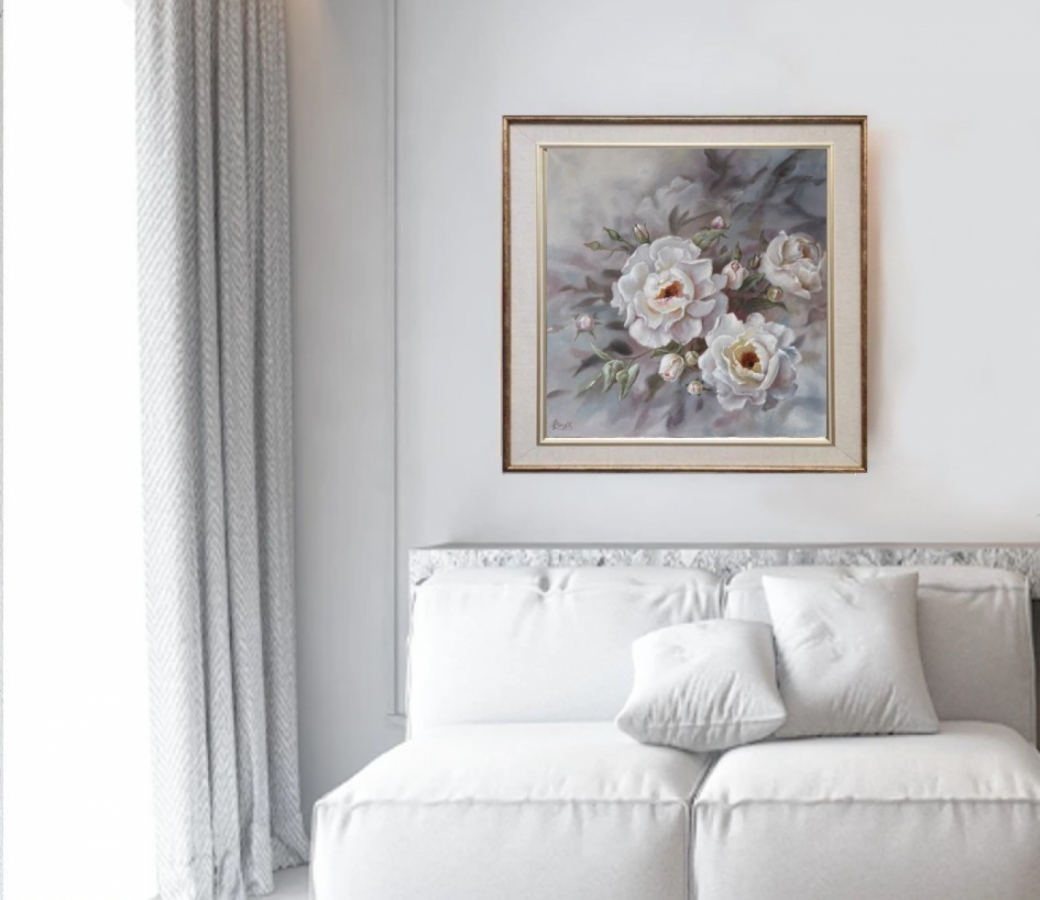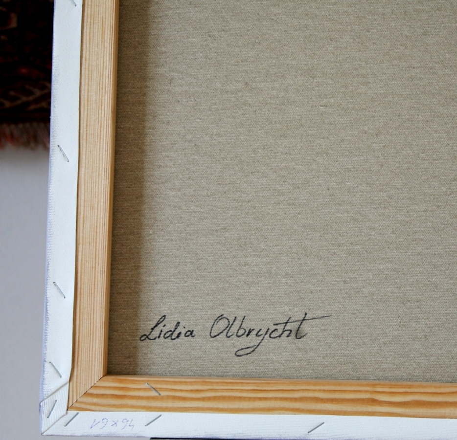 Obraz namalowany profesjonalnymi farbami olejnymi na płótnie bawełnianym naciągniętym na blejtram (drewnianą ramę). Sygnowany. Zabezpieczony satynowym werniksem (nie błyszczy). Format: 60X60 cm Autor: Lidia Olbrycht Na życzenie wystawiony zostanie certyfikat autorski. Obraz bez ramy. Przedstawione na zdjęciach ramy są tylko propozycją oprawy. Obraz ma zamalowane boki zgodnie z jego kolorystyką. Gotowy do zawieszenia - z tyłu zamocowana zawieszka. Przesyłka kurierska ubezpieczona. Kolory na Państwa monitorze mogą nieznacznie różnić się od kolorów obrazu w rzeczywistości - zależy to od typu i ustawień monitora.