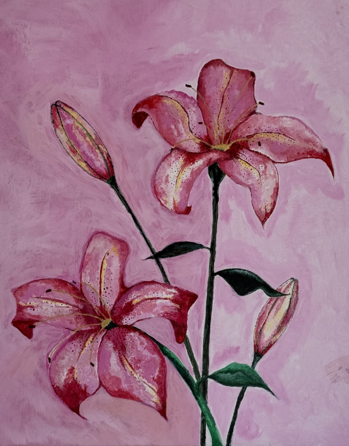 Delikatna, kobieca kompozycja przedstawiająca kwitnące lilie na subtelnym, pastelowym tle. Obraz utrzymany w odcieniach różu przyciąga wzrok swoją lekkością i spokojem, jednocześnie wprowadzając do wnętrza ciepło i romantyczny klimat. Starannie oddane detale kwiatów kontrastują z miękkim, rozmytym tłem, co nadaje pracy głębi i harmonii. To idealna dekoracja do sypialni, salonu lub przestrzeni, w której chcesz stworzyć przytulną, spokojną atmosferę. Obraz może być również wyjątkowym prezentem dla miłośników natury i subtelnej sztuki.