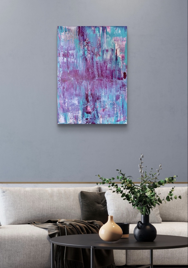 Spectrum barw i emocji. Ręcznie malowany obraz,do salonu, sypialni, korytarza, firmy, biura. Forma i faktura sprawia, że obraz przenika wnętrze. Do stworzenia obrazu użyto farb akrylowych na płótnie w kolorach dominujących turkus, czerwień. Ma ciekawą fakturę uzyskaną w wyniku wielokrotnego nakładania cienkich warstw farby. Świetnie wpasuje się w surowe i nowoczesne wnętrza . Z uwagi na natężenie swiatła i umiejscowienie, barwy różnią się , co powoduje że obraz zaskakuje o każdej porze dnia i roku inaczej. Nie wymaga oprawy. Certyfikat autentyczności. Zabezpieczony werniksem. Darmowa wysyłka.