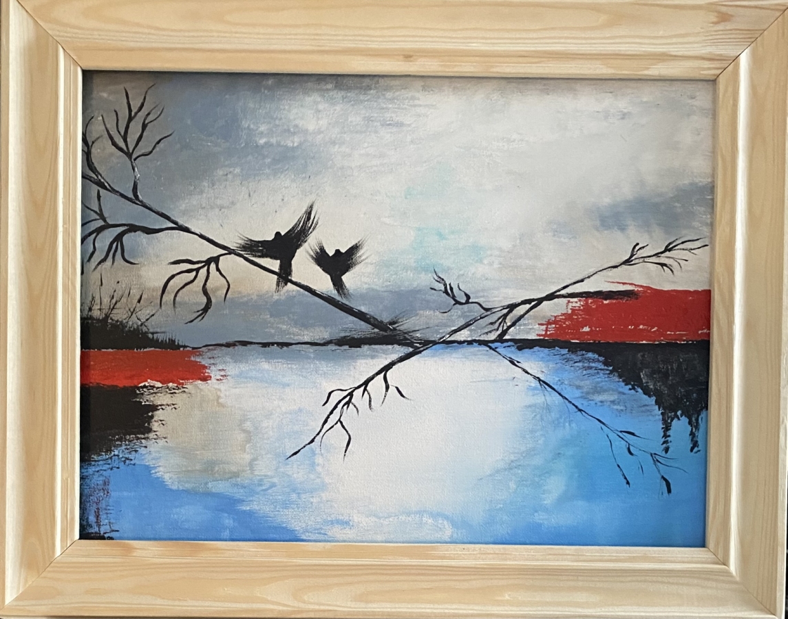 Obraz akrylowy „Szmer” 30x40cm. Rama drewniana, malowana.