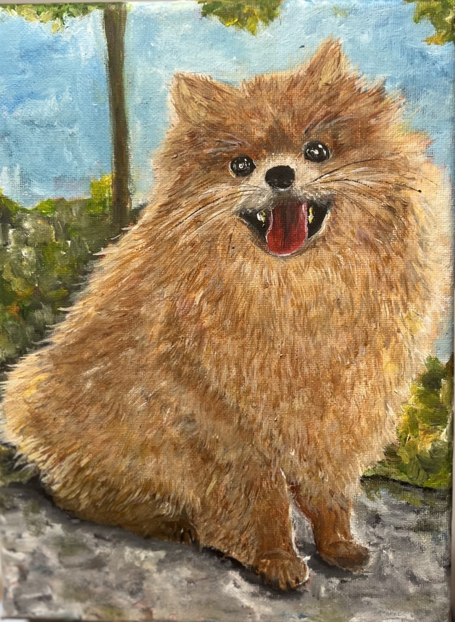Ręcznie malowany portret – Szpic pomerański (Pomeranian) 18x24cm. Olej na płótnie Ten obraz przedstawia radosnego i pełnego życia szpica pomerańskiego – małego pieska o wielkim charakterze. Jego puszysta, złocista sierść została oddana z dbałością o każdy detal, a błyszczące oczy i wesoły wyraz pyszczka sprawiają, że obraz dosłownie „żyje” i przyciąga spojrzenie. To wyjątkowa dekoracja, która wniesie do wnętrza ciepło, lekkość i pozytywną energię. Idealny prezent dla miłośnika psów lub właściciela tej uroczej rasy Technika: olej na płótnie Rozmiar: 18 × 24 cm 100% ręczna praca – unikat (nie jest to wydruk)