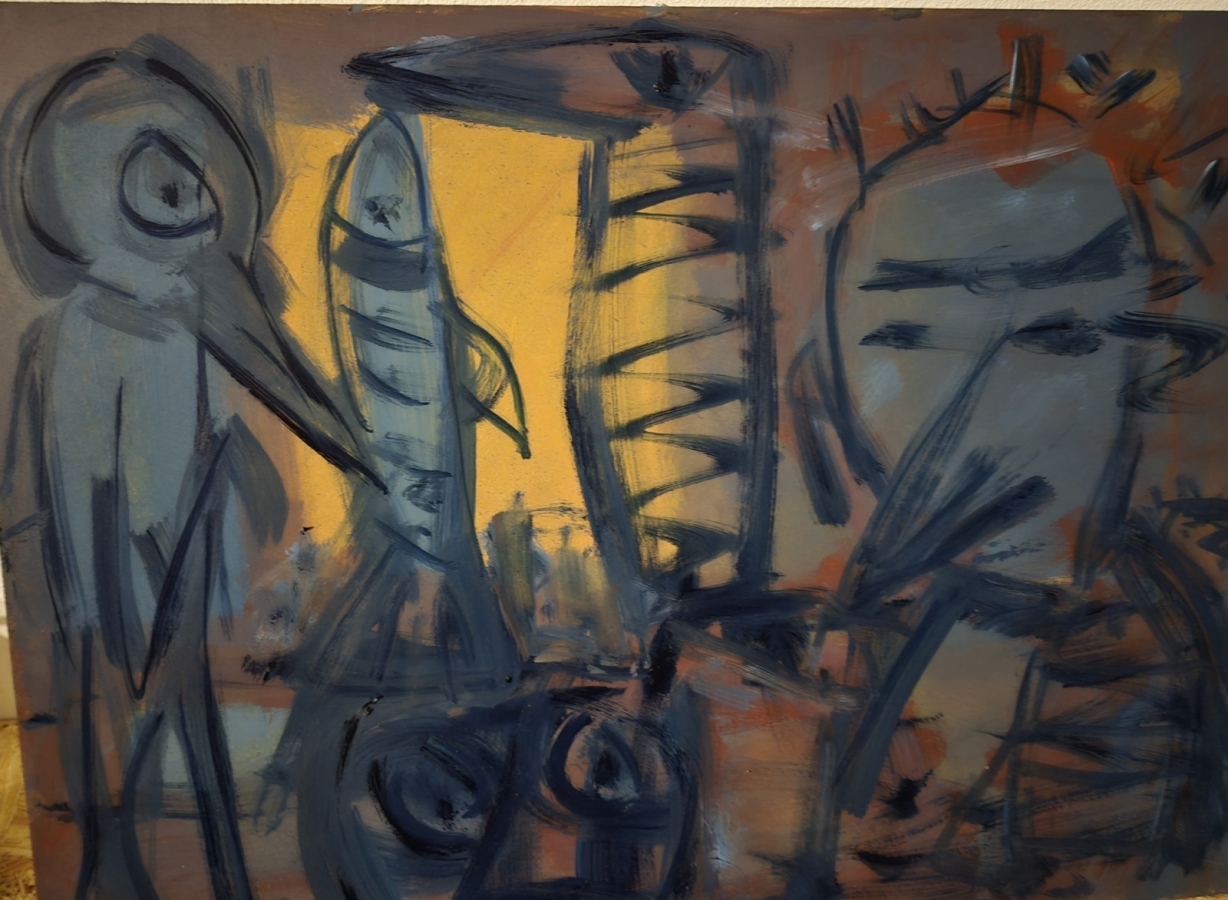 obraz olejny na płycie malarskiej z cyklu WĘDROWCY, wymiar 30 x 40 cm. WĘDROWCY to aktualnie najważniejszy, najnowszy cykl Kazimierza Klickiego — przede wszystkim duże obrazy na płótnie, często w formacie 150 × 120 cm, a także mniejsze prace. To malarskie spotkania z człowiekiem, naturą, pamięcią i tym, co nie do końca nazwane. W tym malarstwie ważny jest gest i sam akt malowania. Istotna jest relacja z podświadomością i stan "tu i teraz" autora. Każdy obraz to kolejny etap drogi, prowadzącej między rytmem, ciszą, strukturą i gestem.